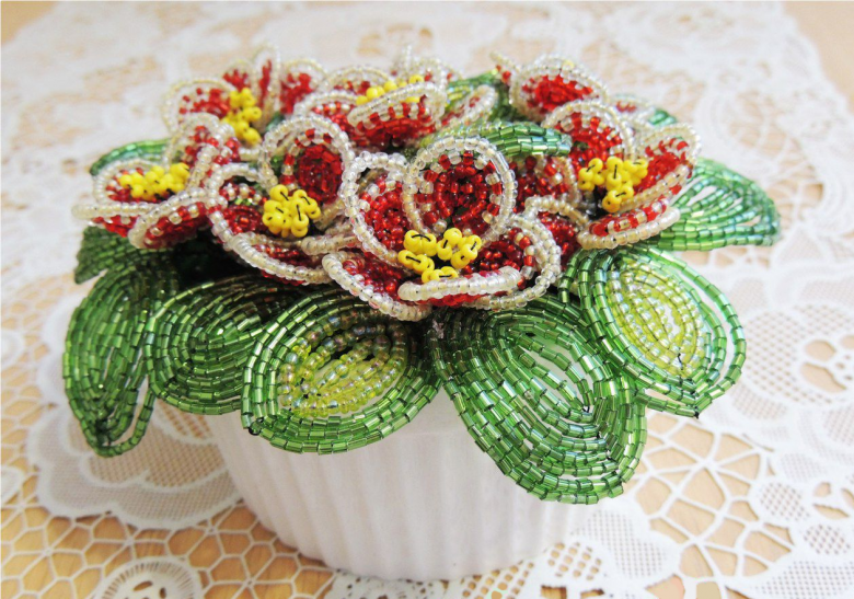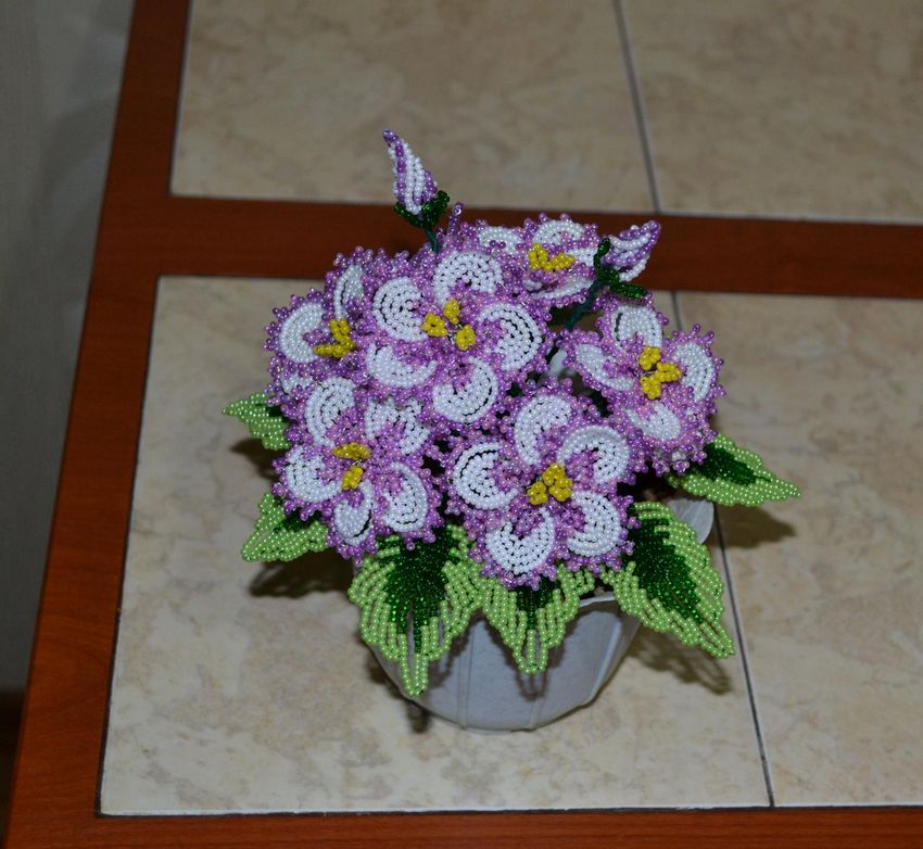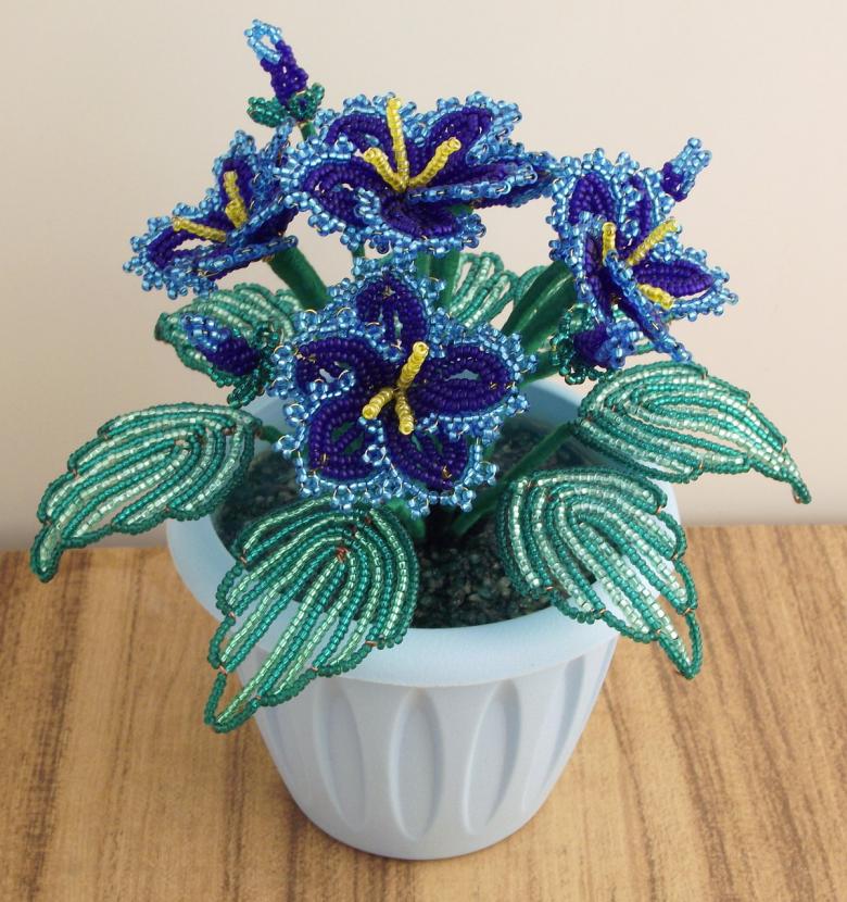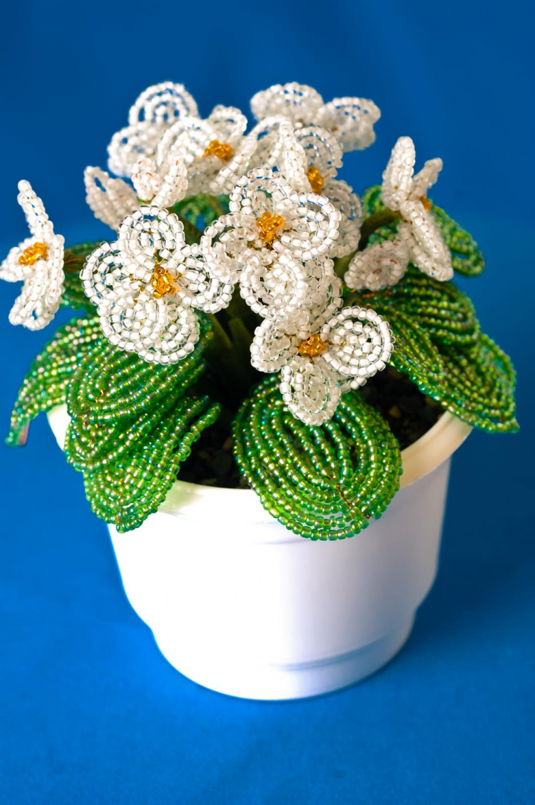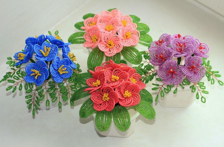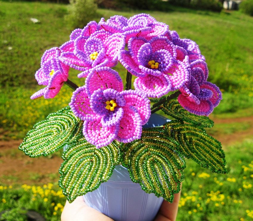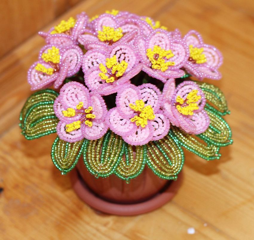 C'est l'une des plantes d'intérieur les plus appréciées. Il n'est pas surprenant que de nombreuses personnes ne voient pas d'inconvénient à avoir une belle plante dans leur appartement tout au long de l'année. La délicate fleur violette peut être façonnée à partir de perles. Ce n'est pas un problème pour le tisserand et c'est facile à faire, même pour les débutants.