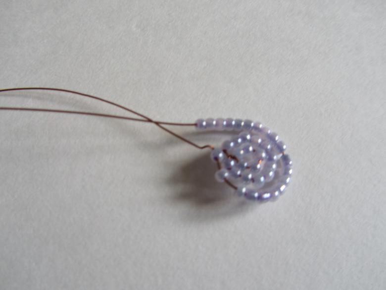 - Les perles sont déplacées vers le centre, le fil est enroulé pour former une boucle ;