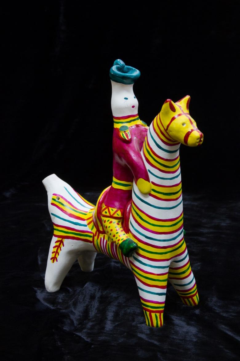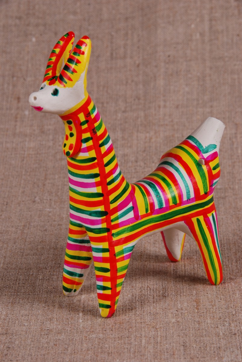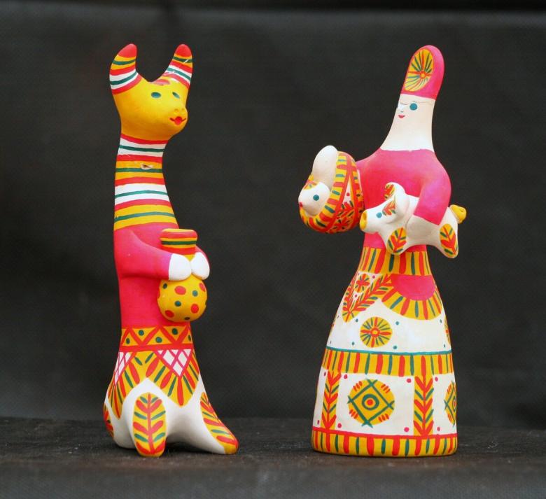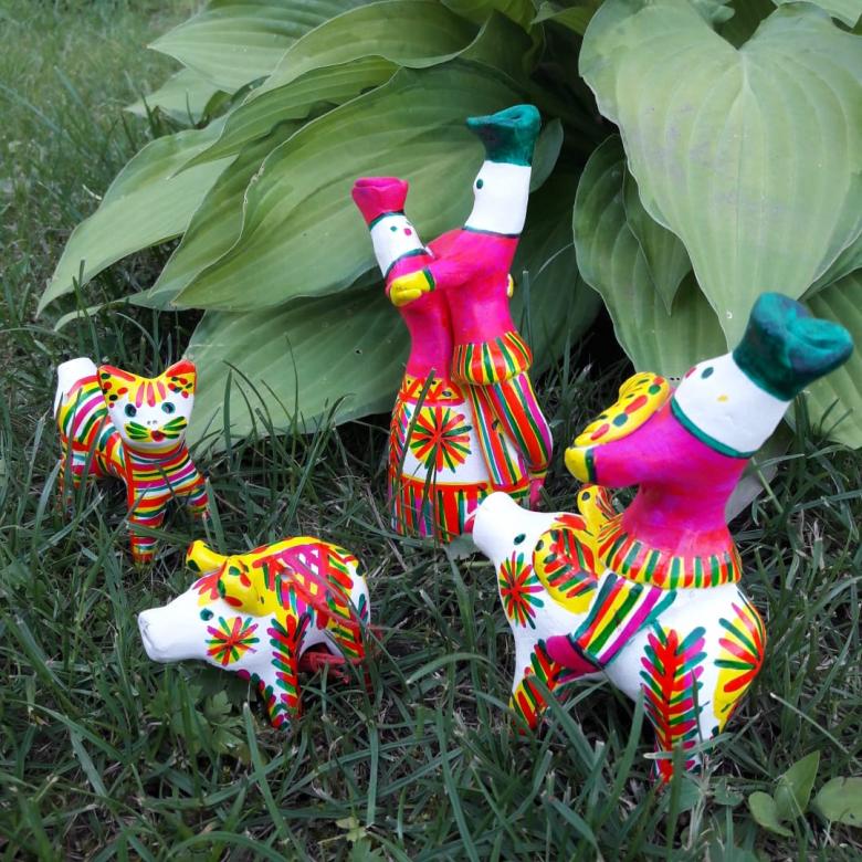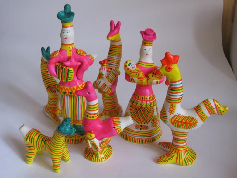 Dans les mains des femmes, des animaux de contes de fées ont été progressivement créés. Des chèvres au long cou, des loups aux yeux doux, d'intéressantes "raies à bosse". Les femmes modèlent des "dames" coquettes tenant des canards, des messieurs portant des chapeaux à plumes et des cavaliers fringants.