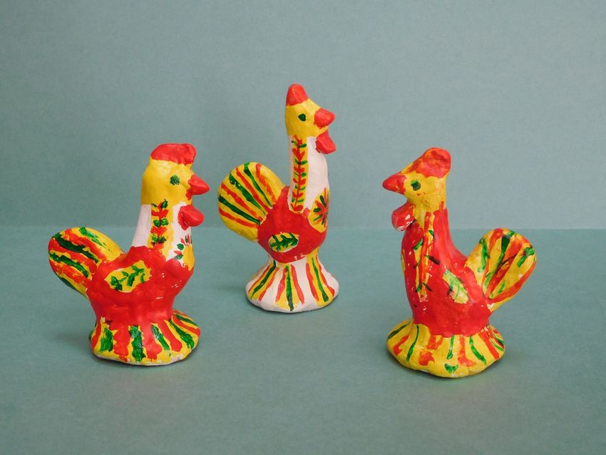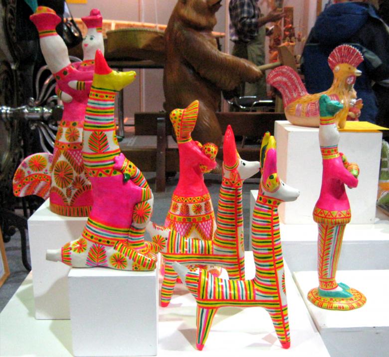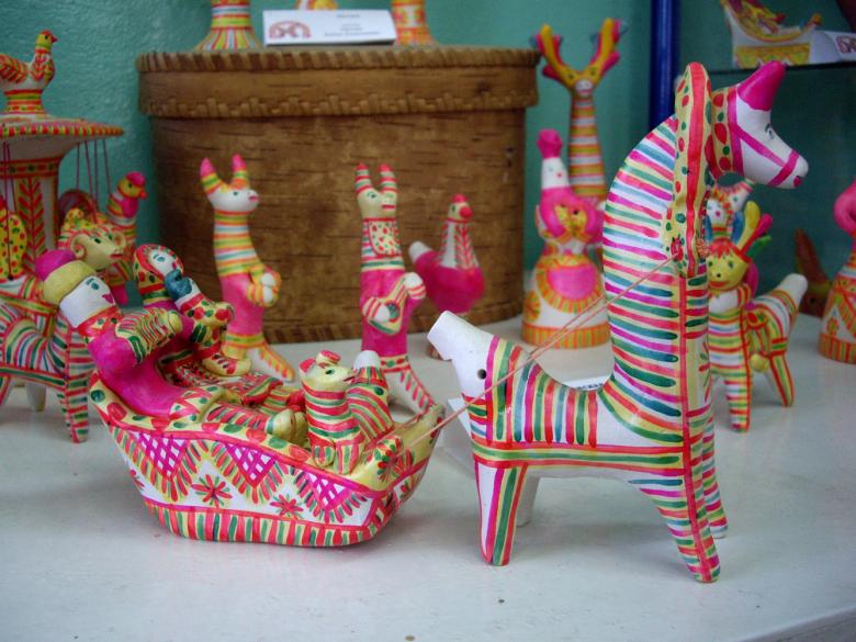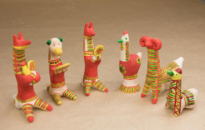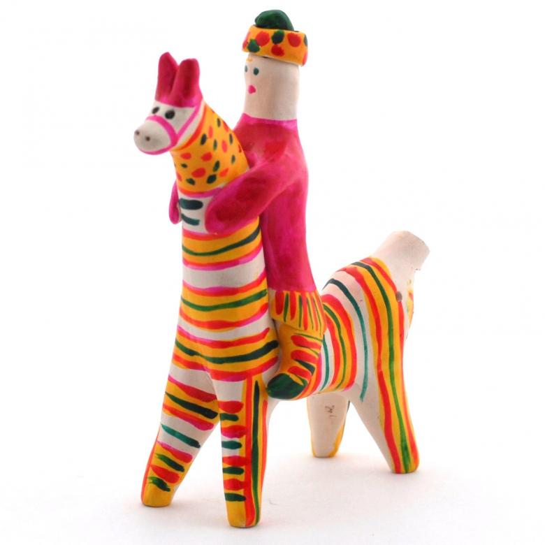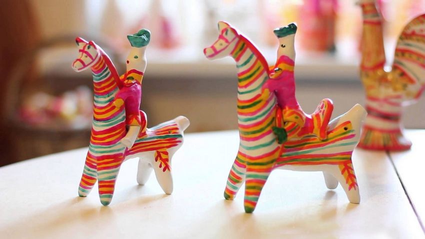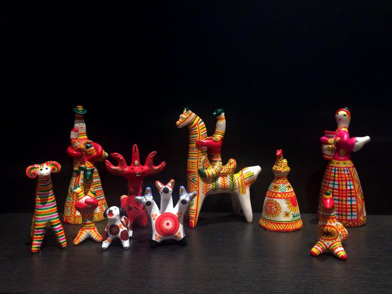 Dans les mains des femmes, des animaux de contes de fées ont été progressivement créés. Des chèvres au long cou, des loups aux yeux doux, d'intéressantes "raies à bosse". Les femmes modèlent des "dames" coquettes tenant des canards, des messieurs portant des chapeaux à plumes et des cavaliers fringants.