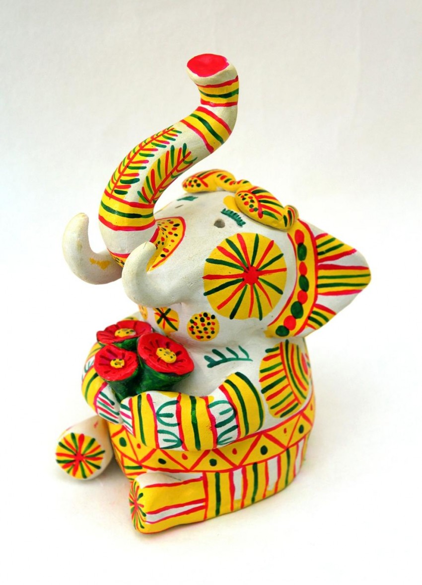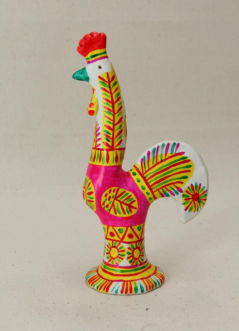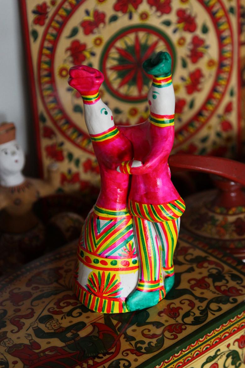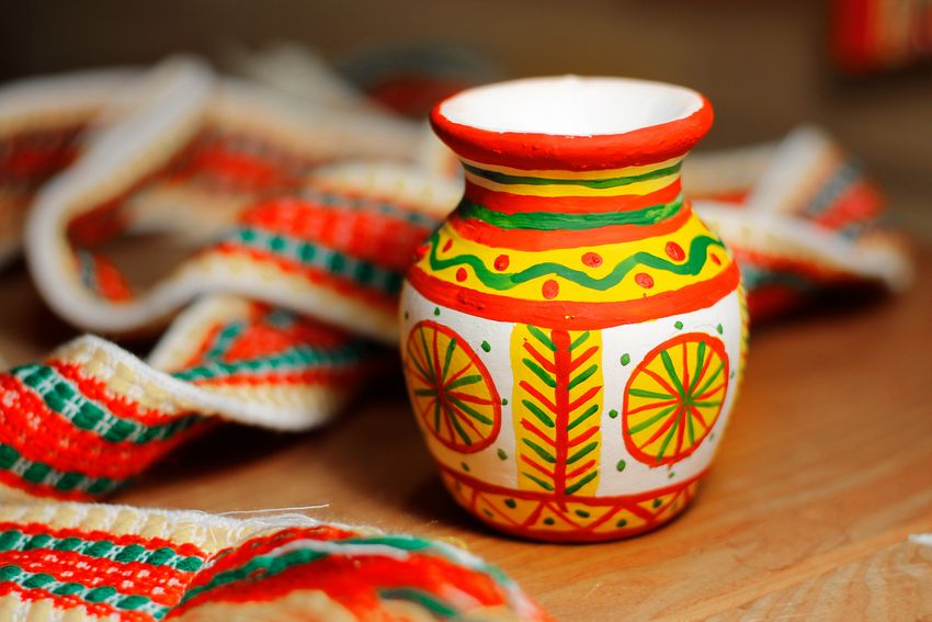 - L'étape finale a été de commencer à peindre l'ébauche. Les artisanes populaires travaillaient avec des plumes d'oie et de poulet, ce qui permettait de créer des rayures fines et uniformes. La peinture sous les plumes a été parfaitement appliquée sur l'ébauche en argile.