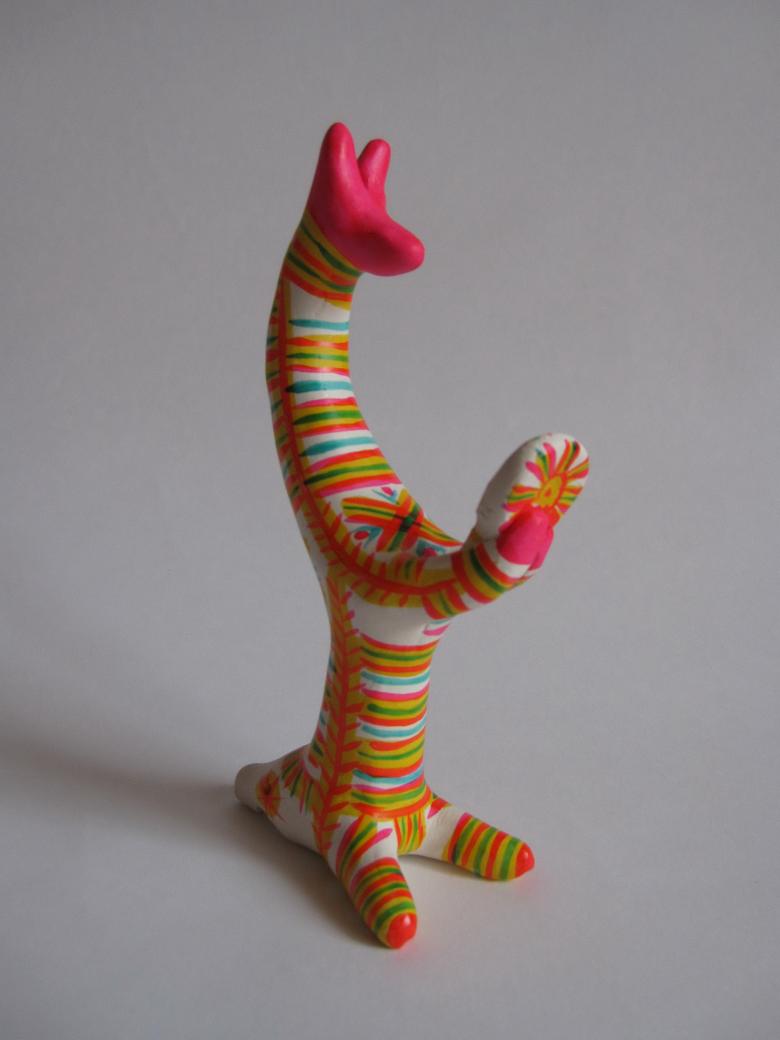 - L'étape suivante consistait à travailler sur la correction, le lissage et l'ajout de détails. L'argile foncée cuite a été colorée en blanc-rose, ce qui a permis d'appliquer ensuite différentes couleurs sans apprêt.