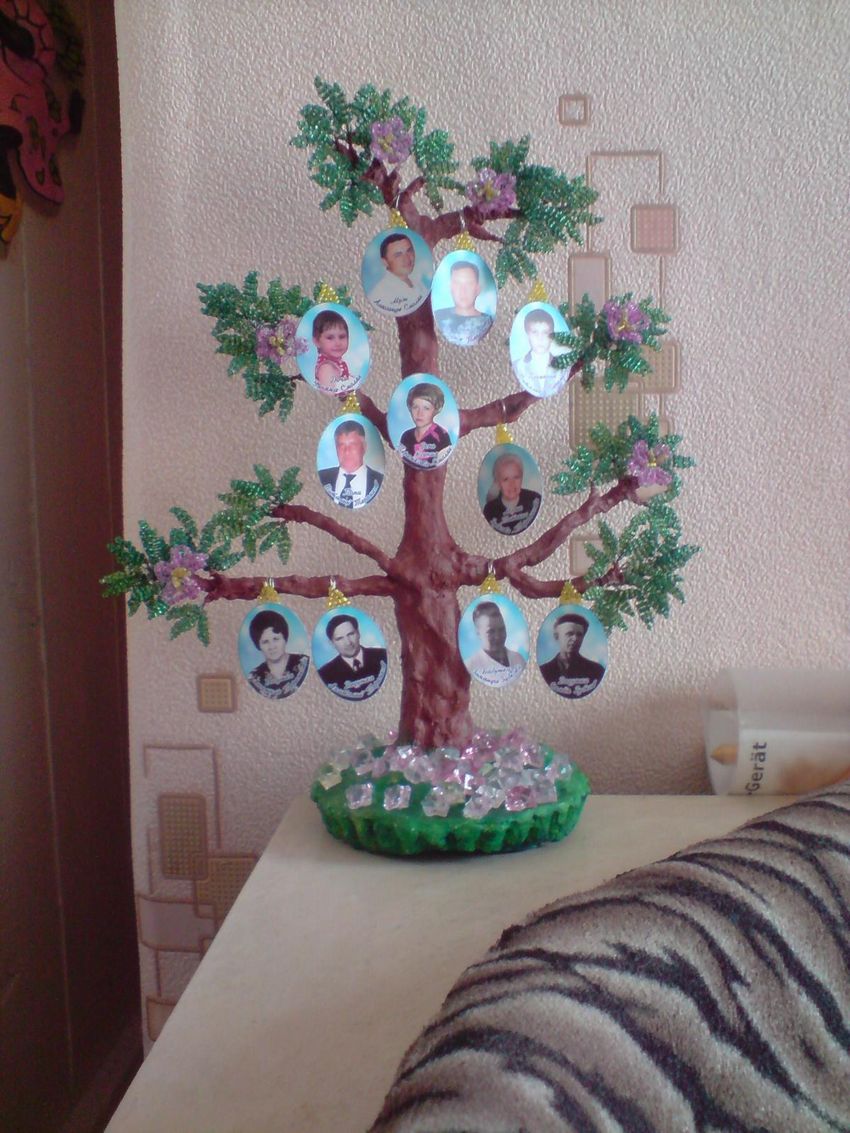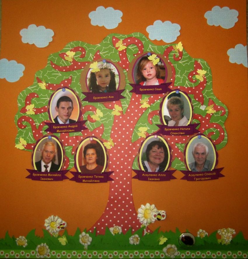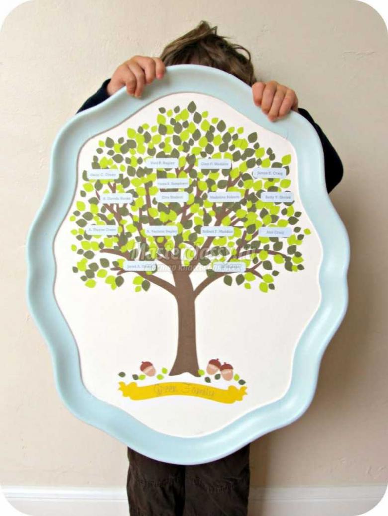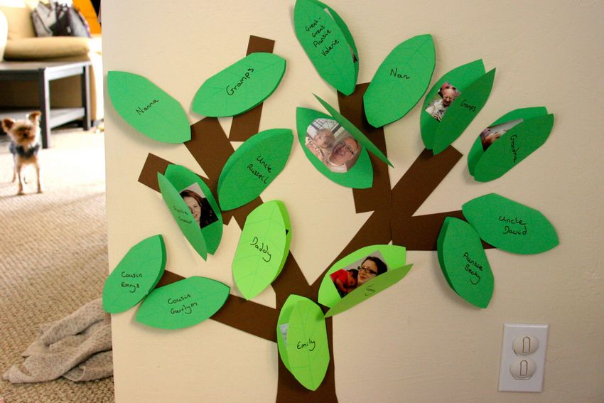 La méthode la plus simple et la plus accessible consiste à en dessiner un vous-même. Utilisez des crayons ou des aquarelles pour dessiner un arbre sur une feuille de papier feutre d'une certaine taille et choisissez l'un des modèles proposés pour remplir les données généalogiques. On peut utiliser des photographies de proches ou une liste d'initiales.
