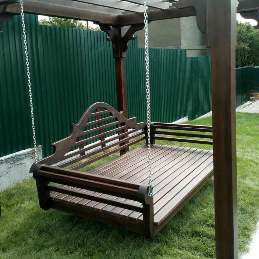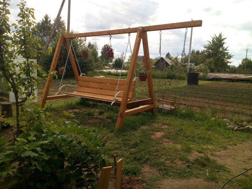 Balançoire pour datcha de leurs propres mains en bois ou en métal - dessins, dimensions, conseils utiles, photos de travail
