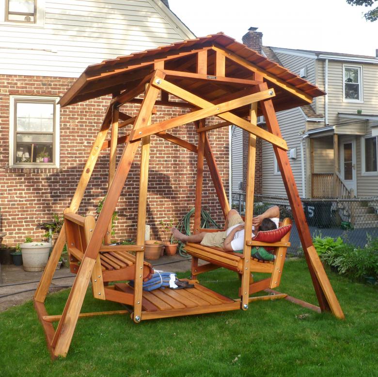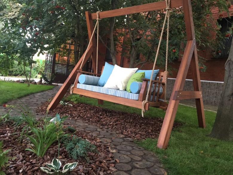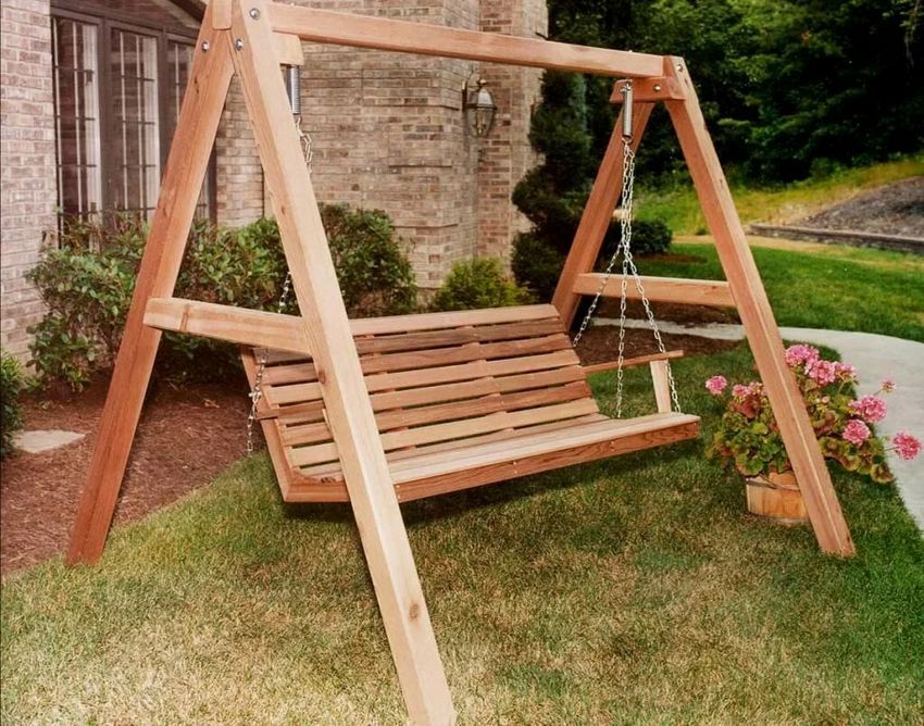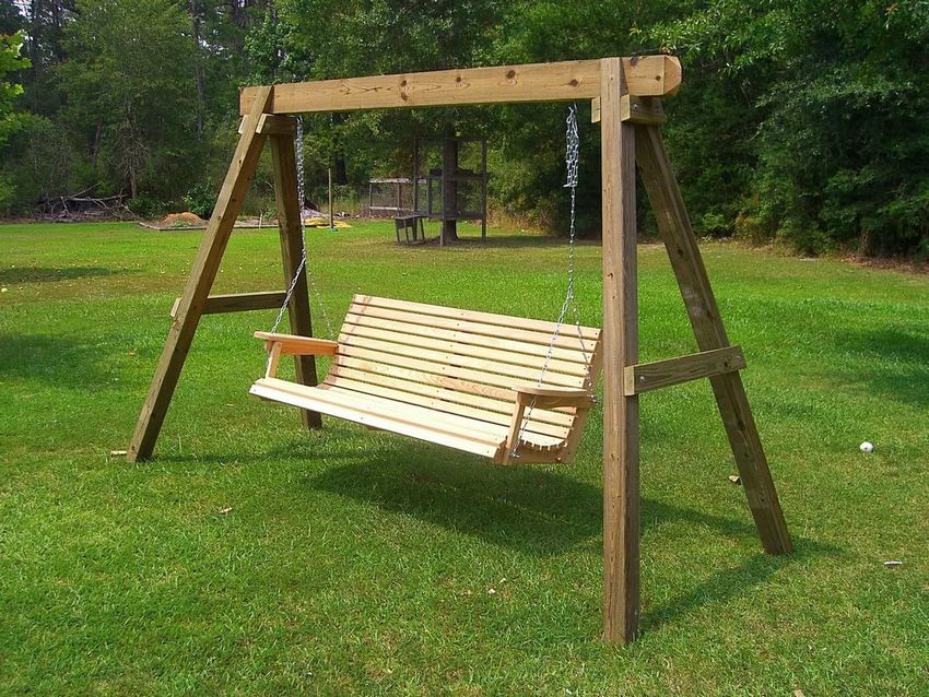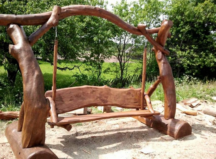 Fabriquer une balançoire en bois de ses propres mains pour un chalet est très simple, il suffit de choisir le croquis le plus simple et de lui donner vie. Mais les produits de l'auteur et du concepteur sont plus attrayants, et lors de leur assemblage, vous pouvez renforcer vous-même le cadre et augmenter la sécurité opérationnelle de la construction.