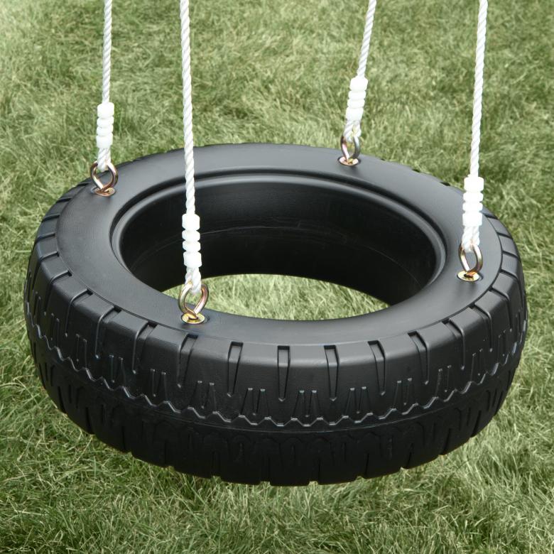Les vieux pneus de voiture sont résistants et constituent un excellent complément à l'aire de jeu. La balançoire peut être suspendue en cercle avec une planche fixe pour simuler un siège, vous pouvez sculpter un cheval dans le pneu ou le couper en deux.