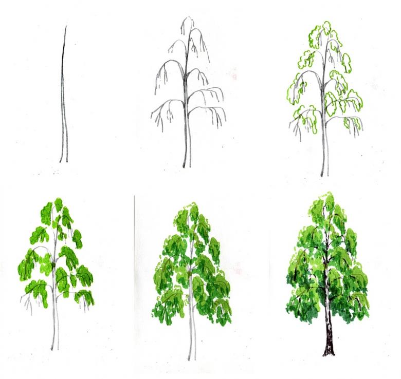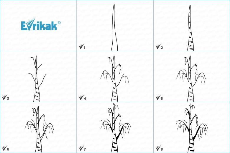 Étapes pour le dessin de bouleau pour débutants