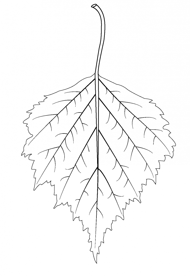 - La forme de la goutte est prise comme modèle pour dessiner une feuille de bouleau. Une ligne centrale est tracée le long du centre.
