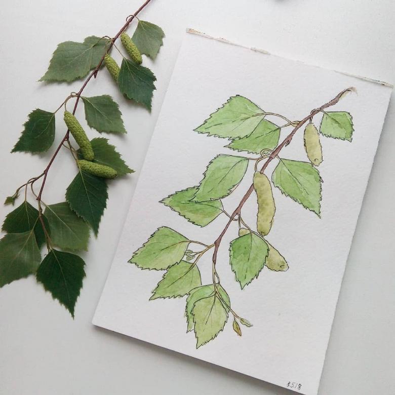 - Quelques feuilles et bourgeons sont terminés comme décoration typique uniquement des bouleaux.