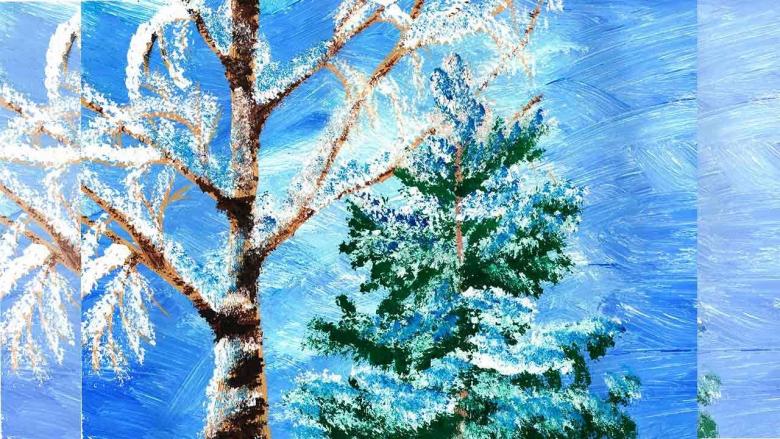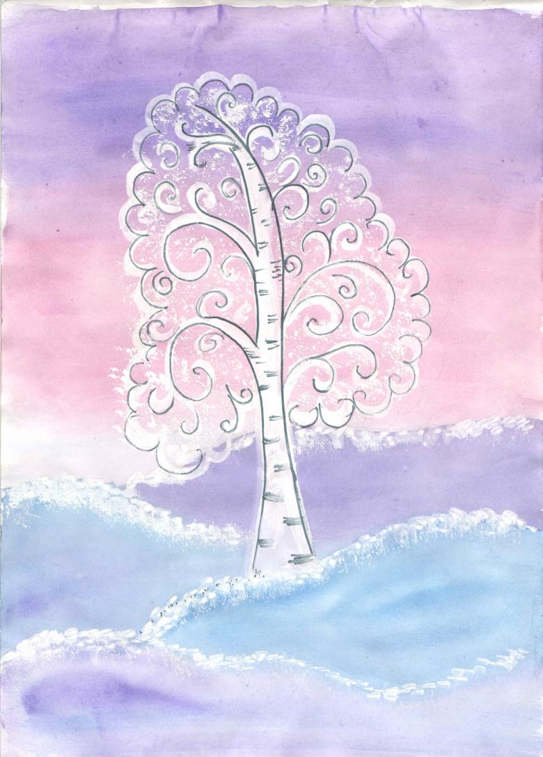 Pour l'hiver, un bouleau sans feuilles sera pris comme base de coloration. Il existe de nombreuses variations sur la façon de peindre un bouleau d'hiver. Le plus simple est d'utiliser une bougie de cire. Pour que la cire soit bien appliquée sur toute l'image, les petites brindilles ne sont pas dessinées trop petites.