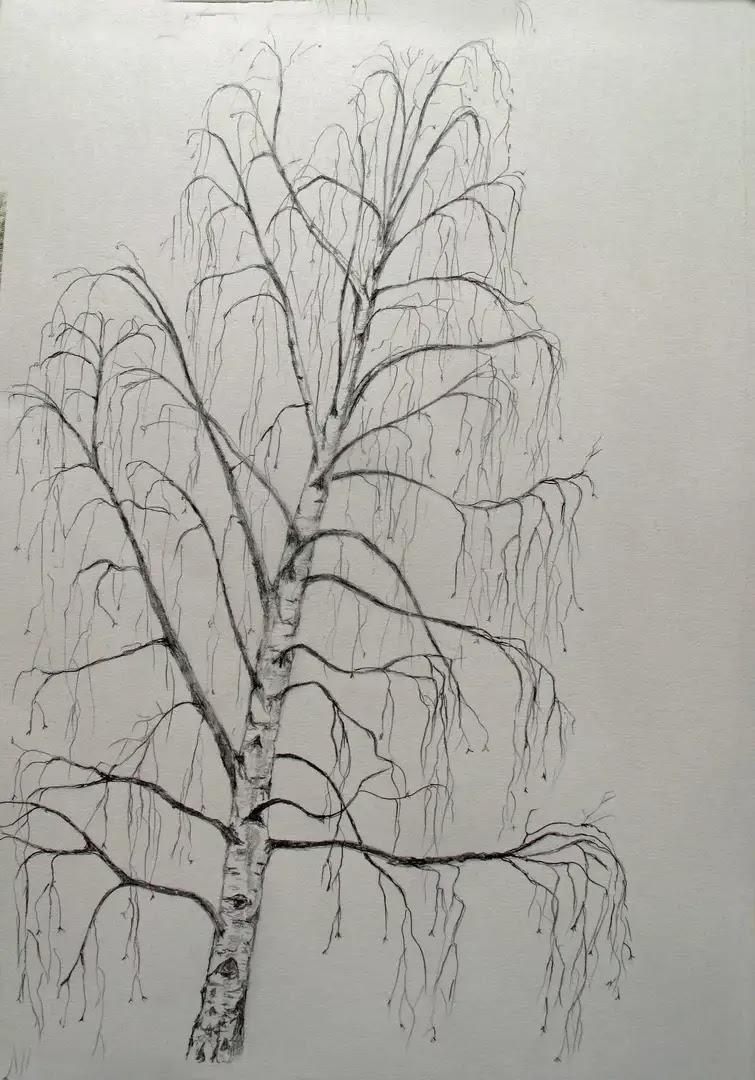 1. Le travail commence par le dessin du tronc d'un bouleau.