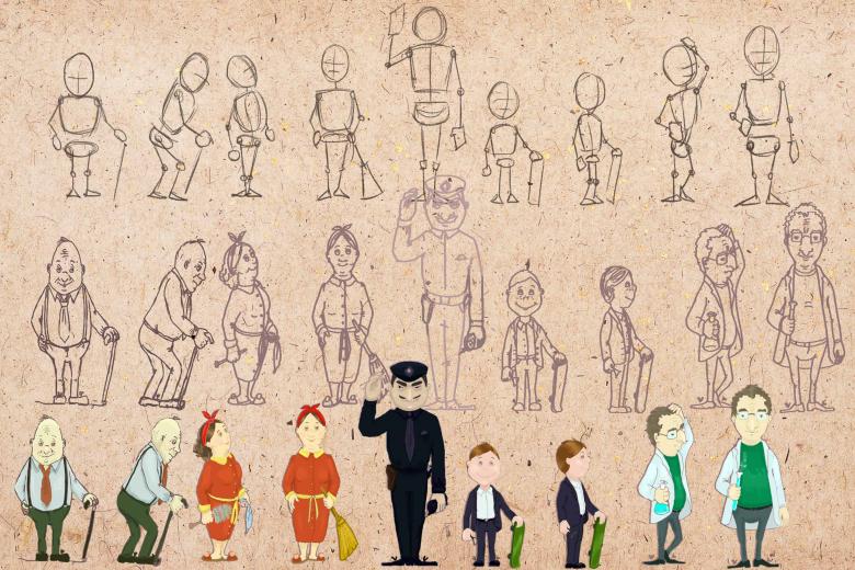 Des artistes professionnels assemblent les personnages sur des feuilles de papier et dans des programmes spéciaux, pièce par pièce. On commence par dessiner une sorte de squelette, généralement de petits ovales reliés par des guides. Puis commence à assembler les muscles ou à dessiner immédiatement les vêtements.