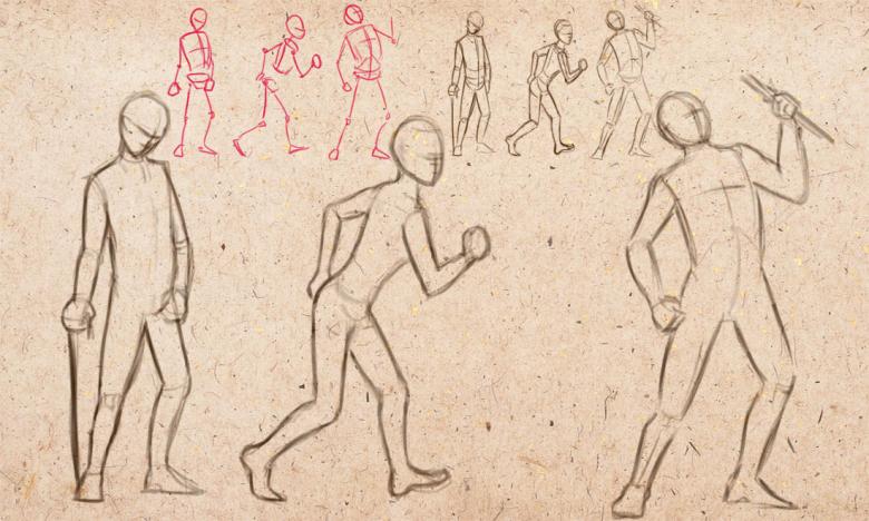 L'humeur du croquis peut être transmise sans utiliser l'émotion. Pour ce faire, on utilise les positions des mains et des pieds et la position du corps. Si vous n'avez pas de modèle parfait, vous pouvez prendre n'importe quelle peinture d'un grand artiste ou d'un dessinateur de BD et essayer d'en faire une esquisse.