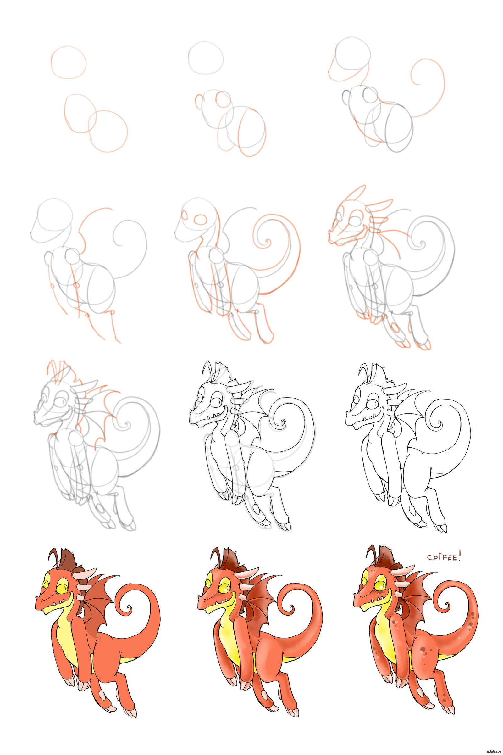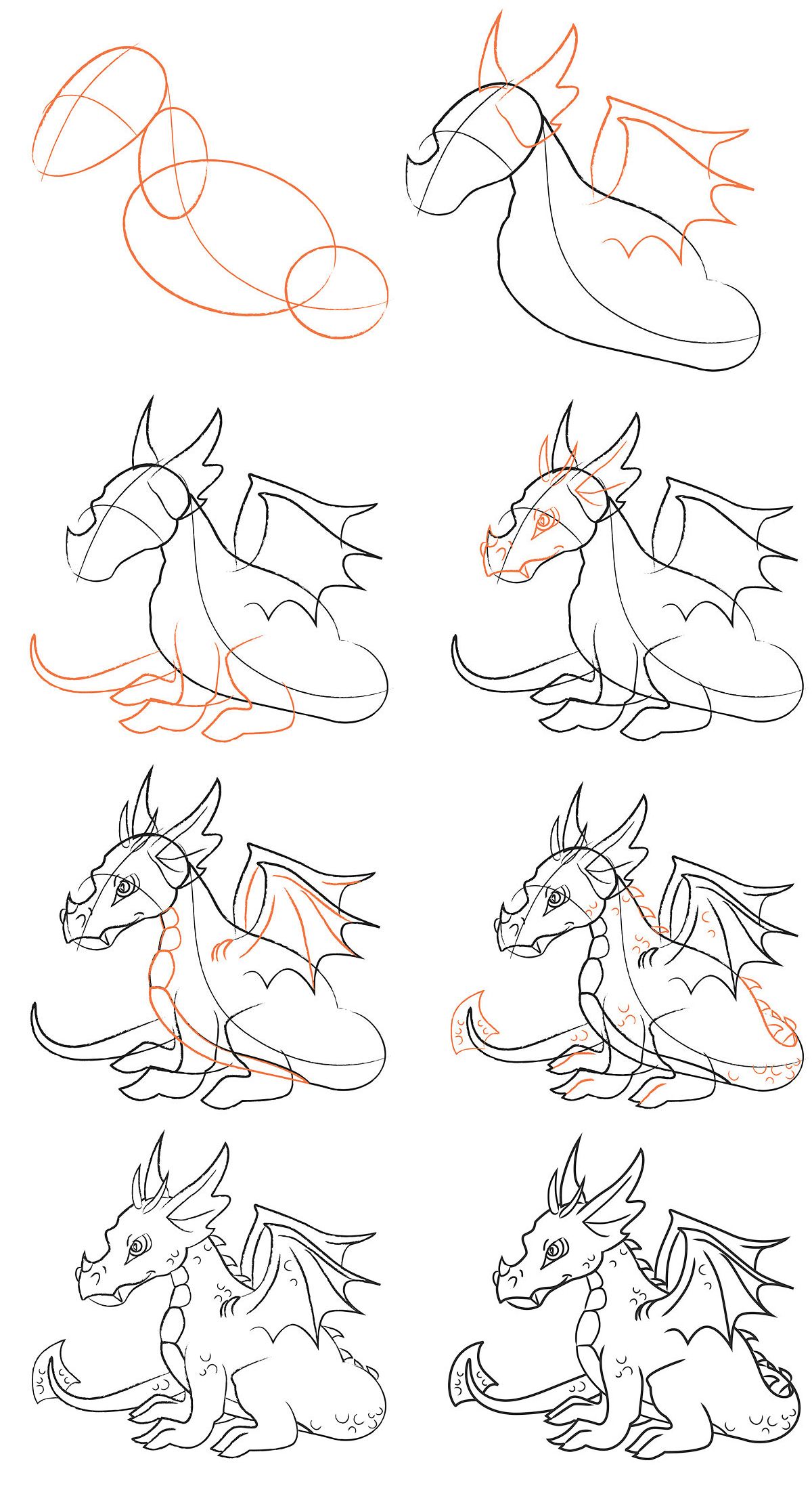 Comment dessiner un dragon au crayon : croquis étape par étape pour les enfants et les débutants