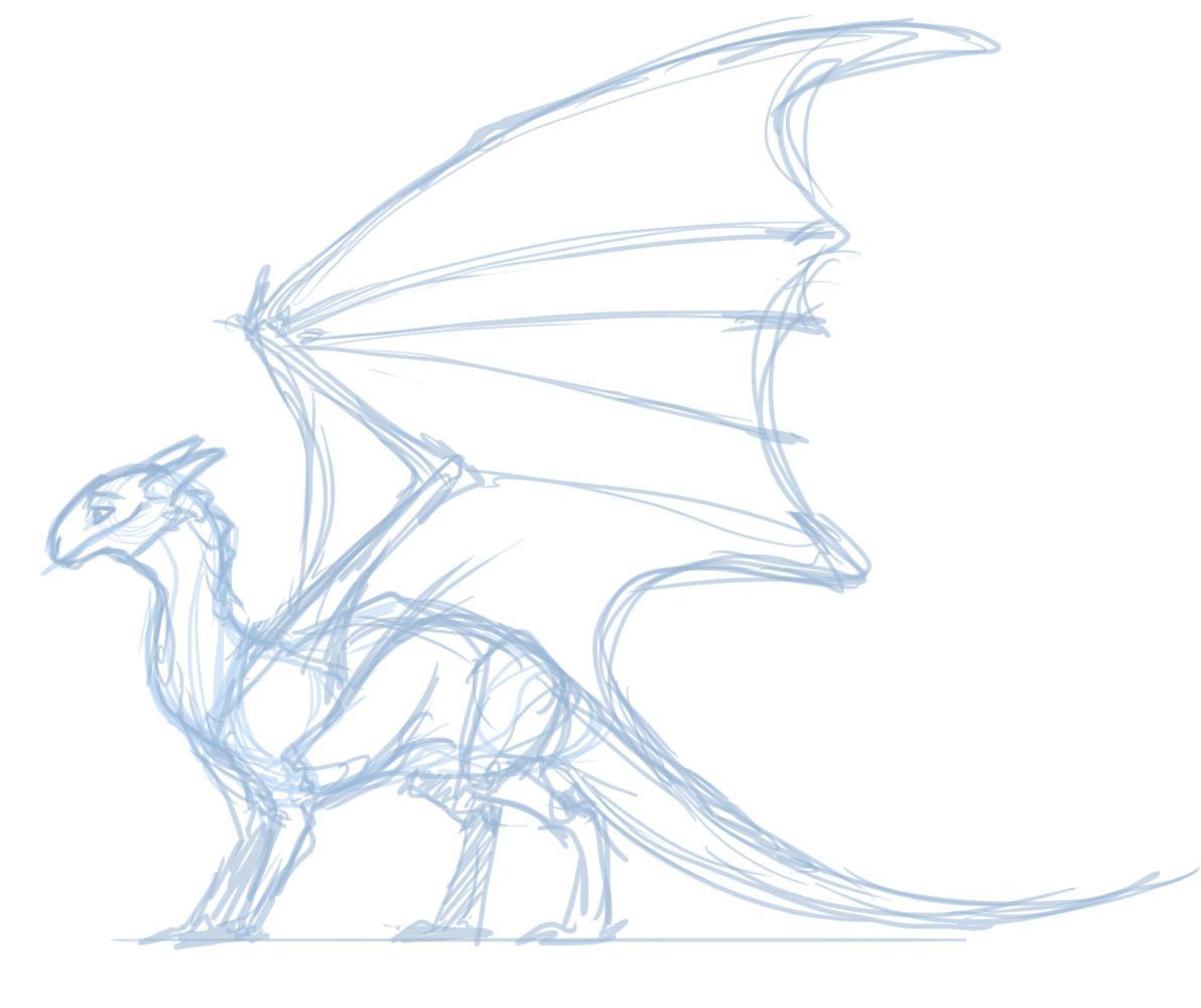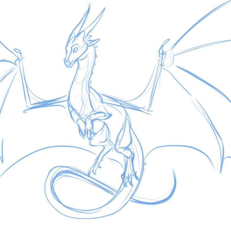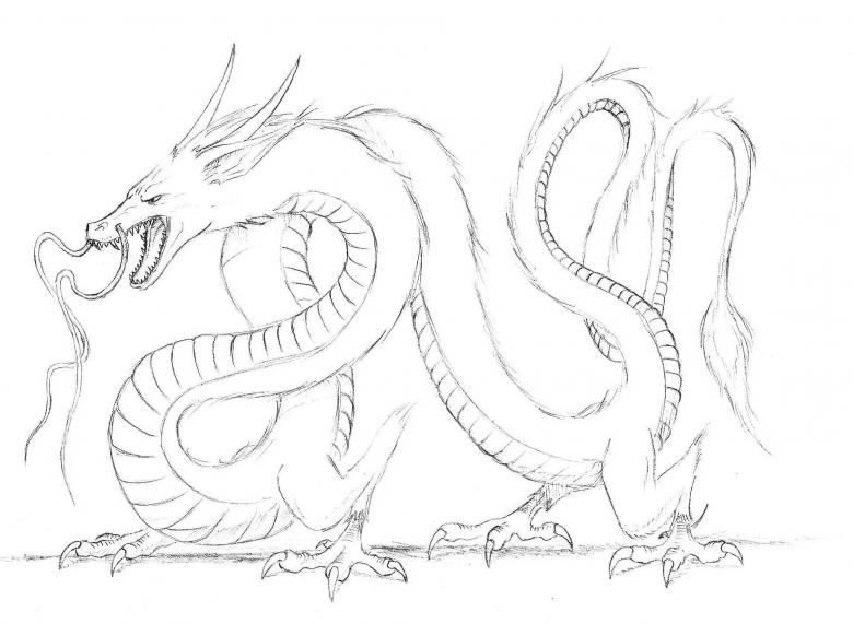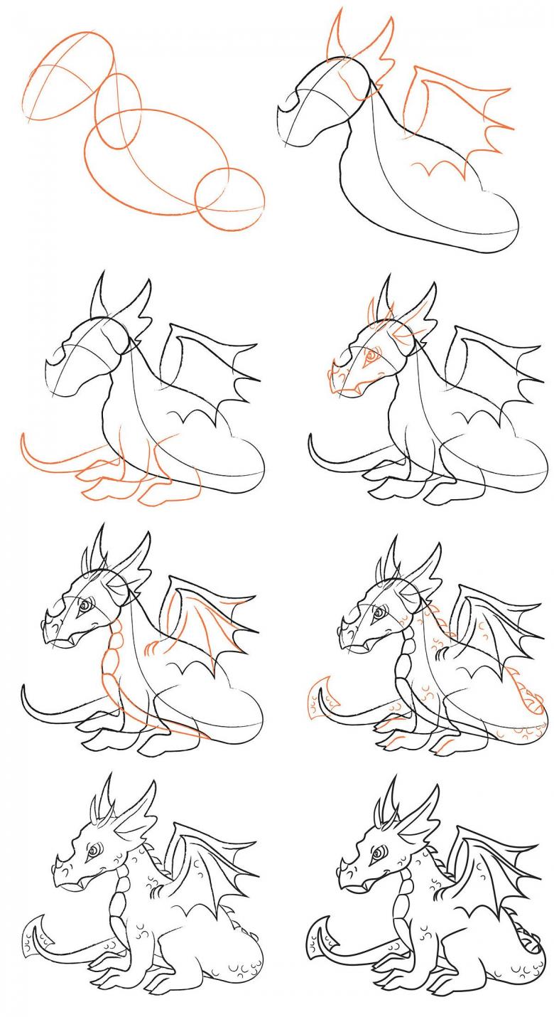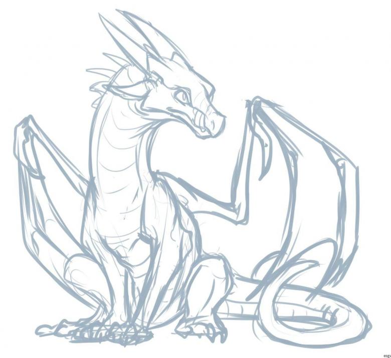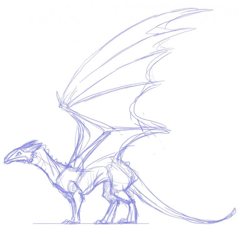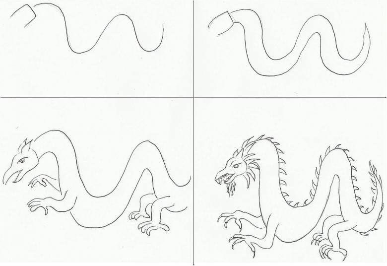 Il faut réfléchir à l'avance à la façon dont on va ressembler à un dragon. Pour simplifier la représentation, prenons le prototype du dragon européen. Il aura quatre pattes, un long cou, une tête ronde, un corps massif, des ailes et une queue. De sa grande bouche, il peut cracher des flammes.