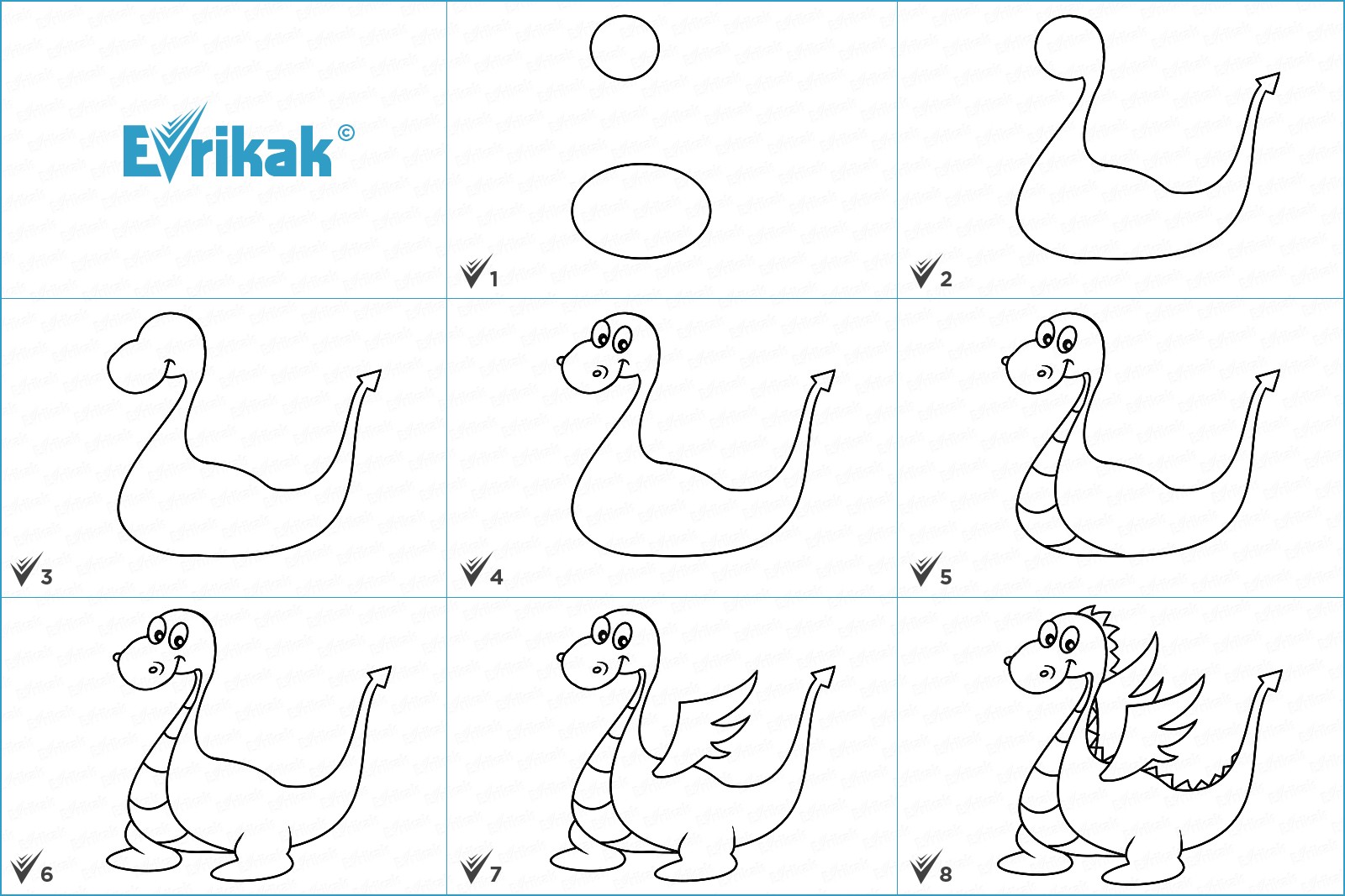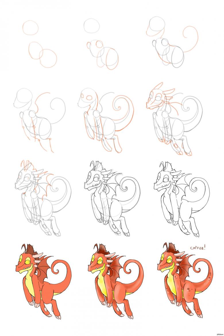 Le dessin d'un dragon réalisé pas à pas par un enfant repose sur un principe simple. Un enfant de tout âge peut le faire, et les parents peuvent l'aider en dessinant des détails clairs.