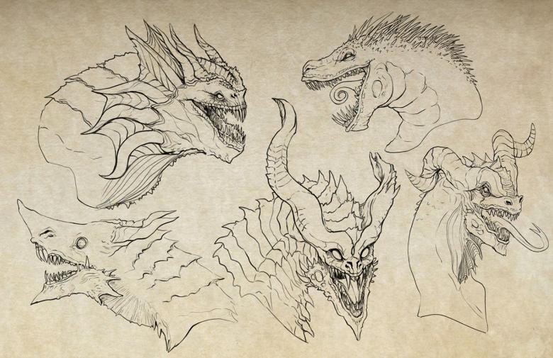 Portrait d'un dragon. Dessiner la tête