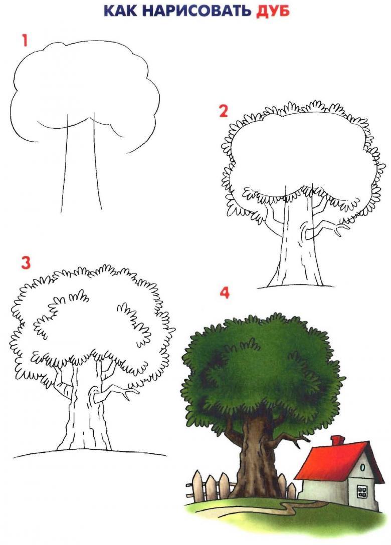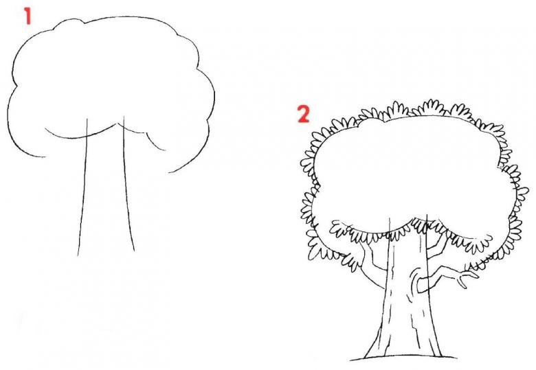 Chaque espèce a sa propre forme de tronc, de feuille, la forme de la couronne entière. Sur la base de ces caractéristiques distinctives, vous pouvez déterminer comment dessiner un beau chêne, pin, érable.