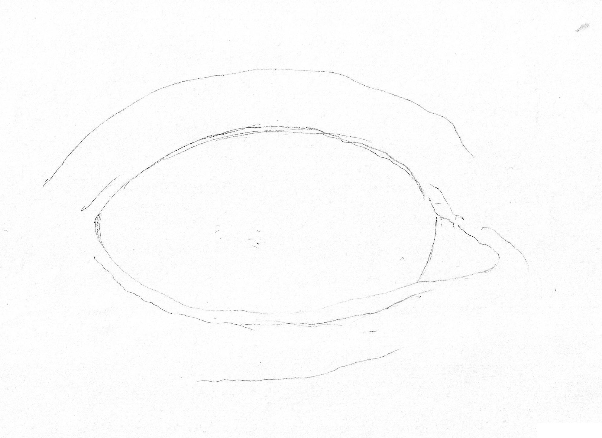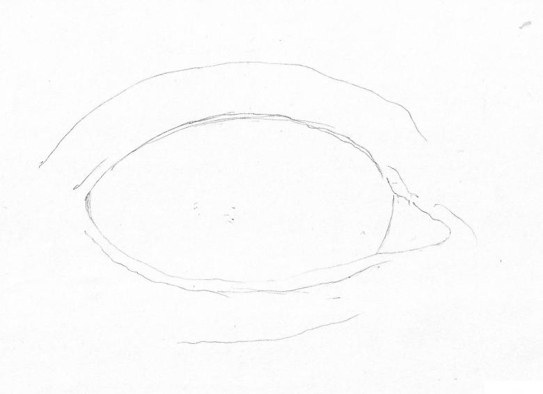 - la partie mobile est légèrement couverte par une paupière, légèrement en dessous du grand cercle, un arc est tracé en haut, représentant le bord de la paupière ;