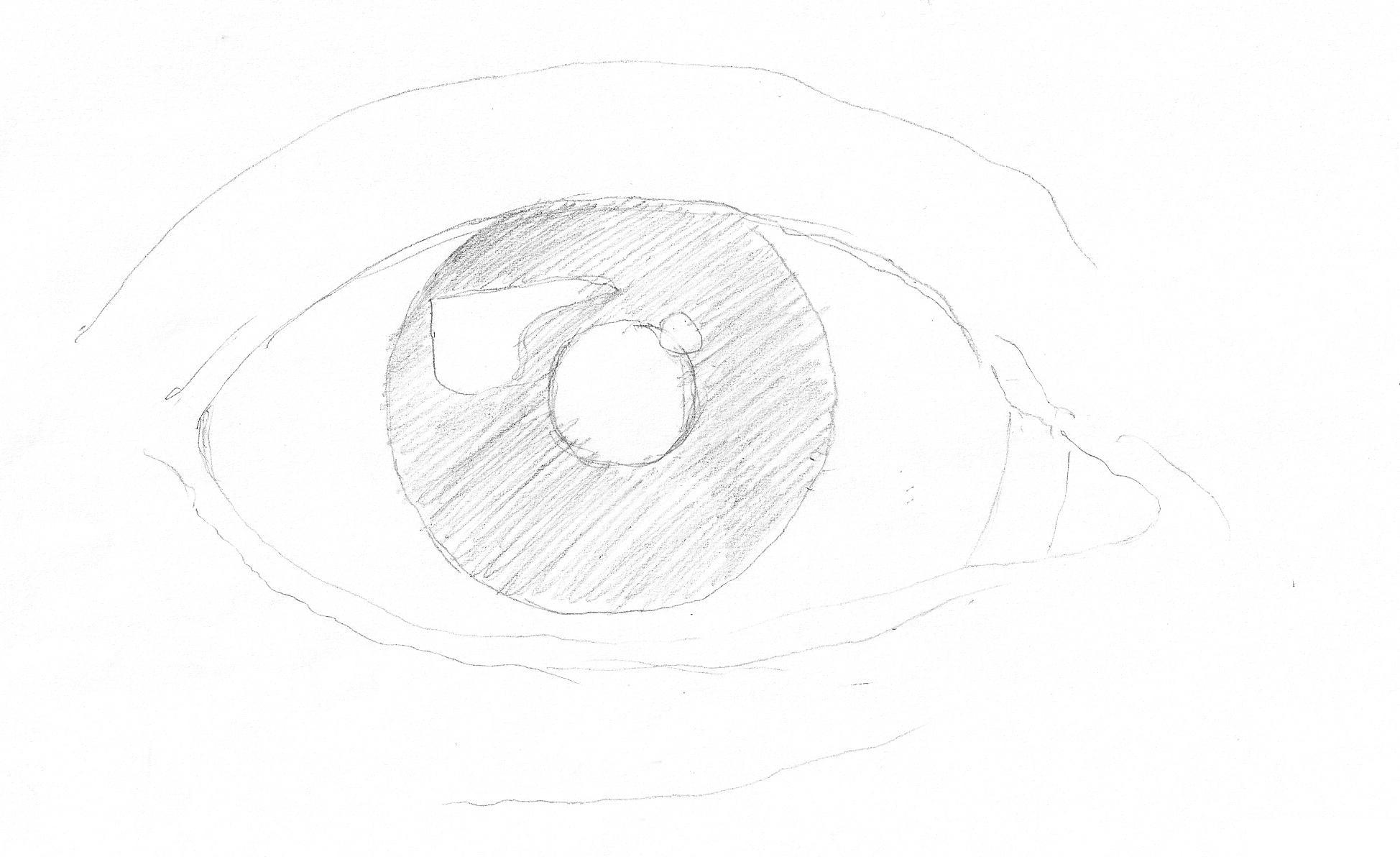 Les yeux ont toujours un reflet naturel, il est donc important de le représenter. L'éblouissement est dessiné le long du bord de l'iris, montrant où la lumière tombe sur eux. Les traits opposés montrent le réflexe sous forme de lumière diffuse. Un petit joint doit être placé du côté opposé à l'éblouissement.