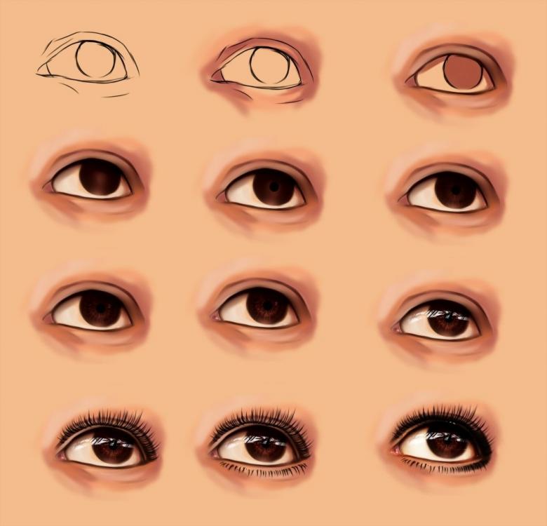- la paupière est ombragée à chaque trait ;
