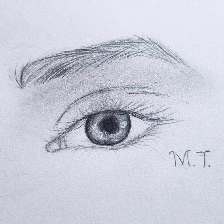 Ce petit élément situé dans les coins des yeux a la forme d'un demi-ovale. Il faut faire une convexité de la larme et la tirer légèrement vers l'extérieur. Il est essentiel de le dessiner pour avoir du naturel et de la vivacité dans les yeux.