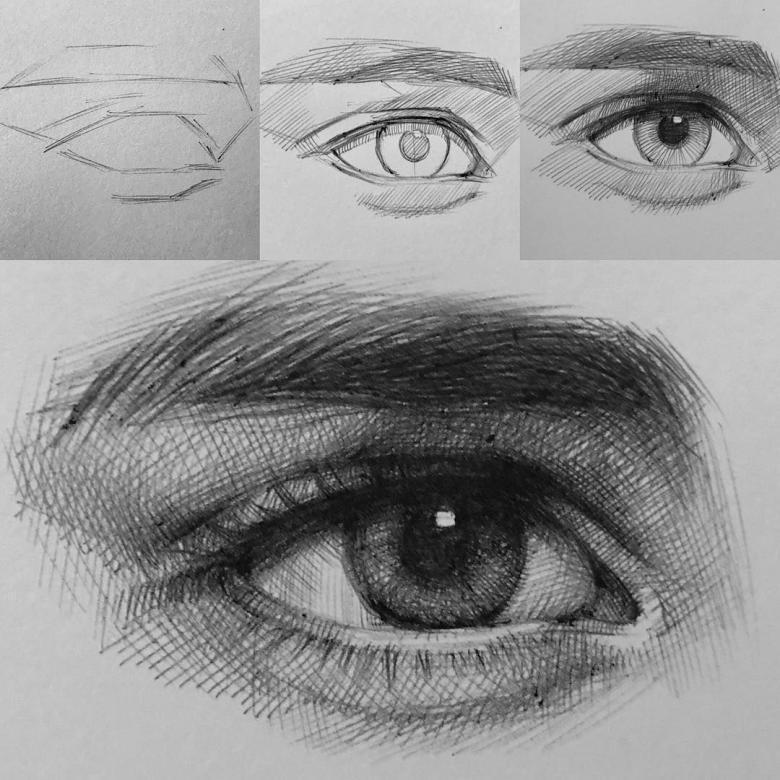 Cette technique est plus facile, il n'y a pas besoin de transmettre d'émotion. Au début, les yeux seront inanimés, cela peut prendre beaucoup de temps, mais plus tard le dessin sera meilleur.