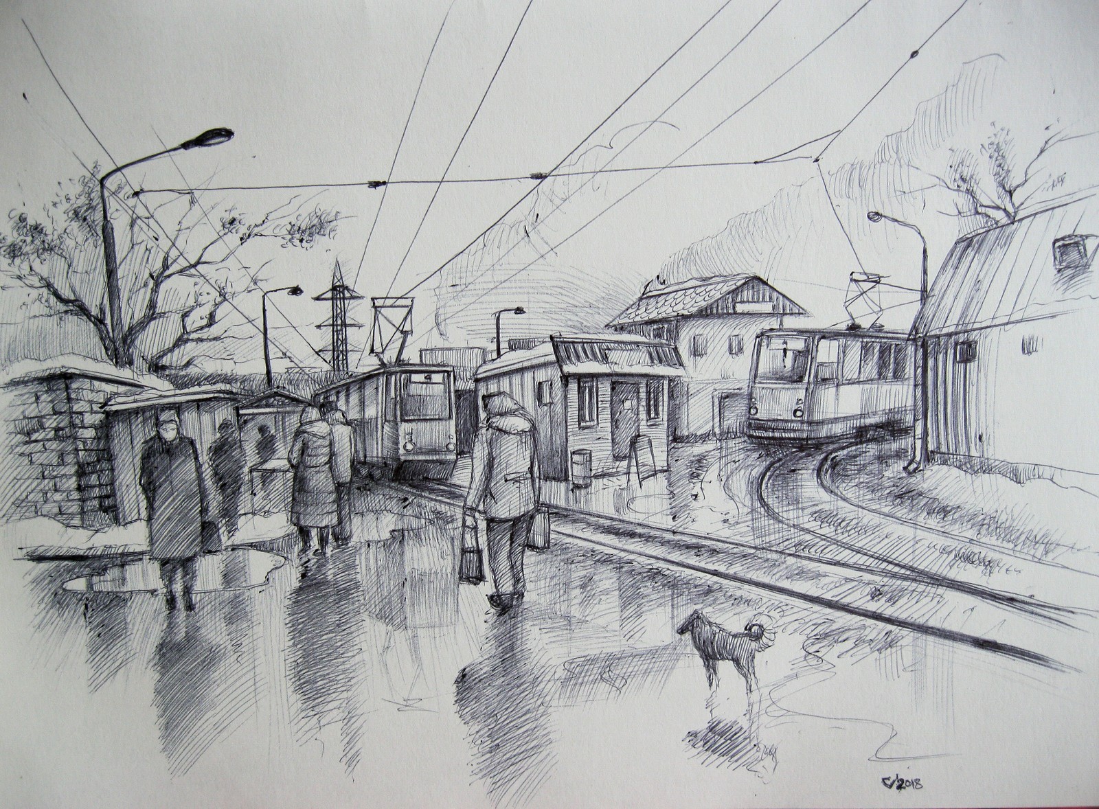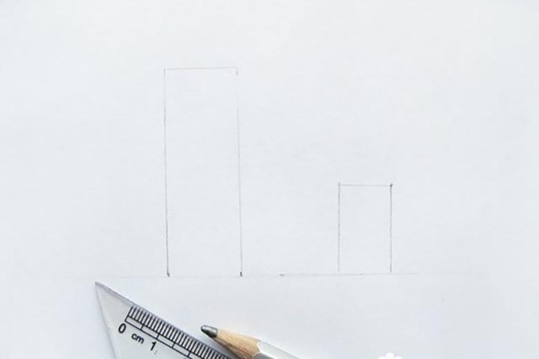- Ensuite, commencez à dessiner les maisons. Prenez une règle et dessinez des rectangles allongés pour indiquer leur emplacement. Rendez les maisons plus réalistes en les taillant, en y dessinant des fenêtres et en y plaçant des antennes de télévision.