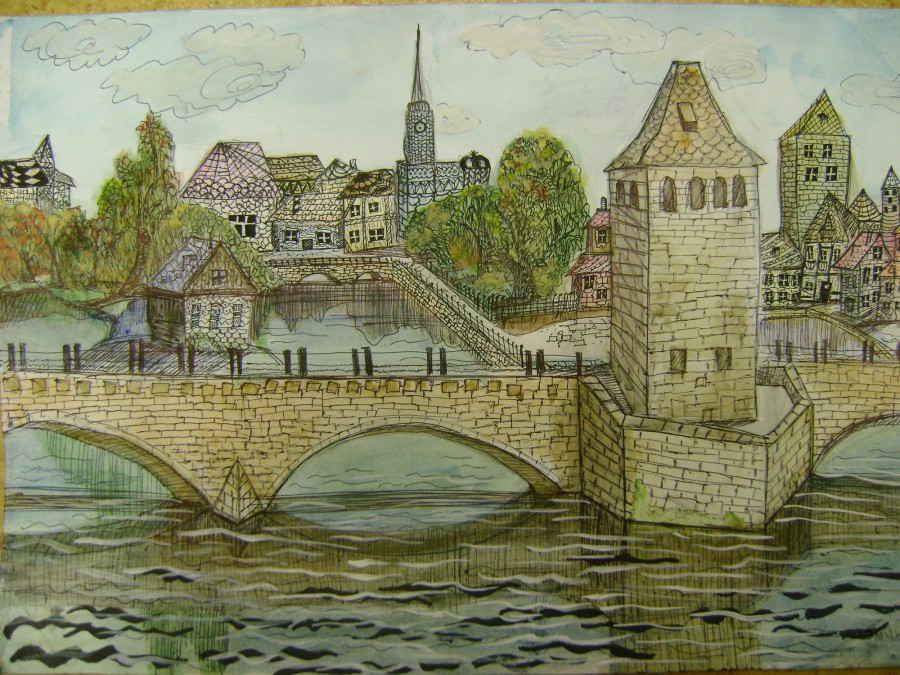 Le thème urbain de ce croquis à l'aquarelle est très original. Il y a quelques règles de base à suivre pour obtenir une ville colorée. Travaillez sur un paysage urbain à l'extérieur de votre maison, sur une pelouse verte. De cette façon, vous pouvez mieux saisir la lumière, les ombres, les teintes et leurs transitions.