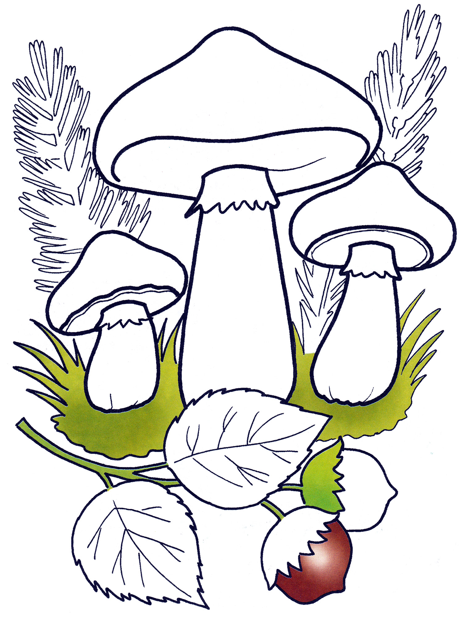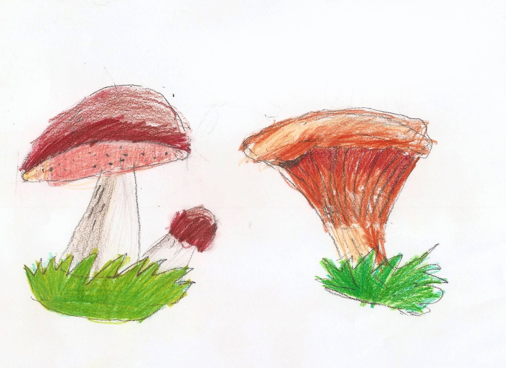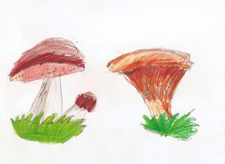 Il existe un très grand nombre d'espèces comestibles différentes dans la nature. "La "viande" des champignons est très riche en protéines et en glucides. Les champignons les plus précieux sur le plan gustatif sont les chanterelles, les champignons beurre, les champignons miel, les cèpes et, bien sûr, les cèpes. Ce sont le plus souvent ceux que les artistes expérimentés et les jeunes enfants aiment dessiner.