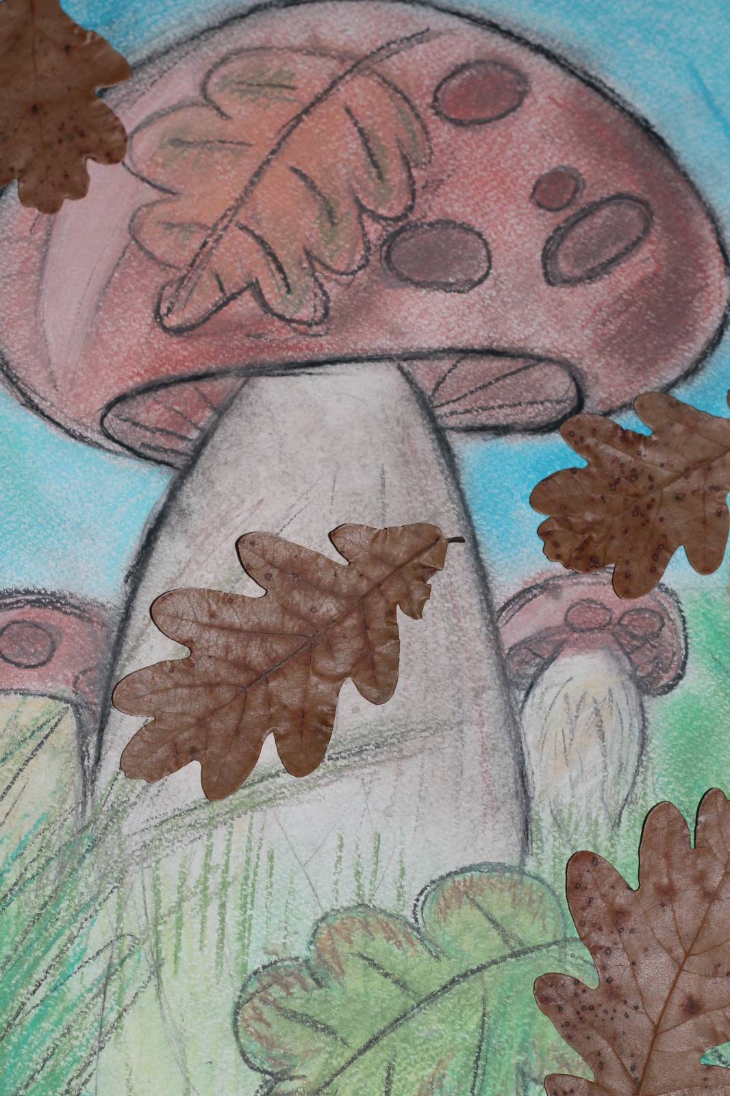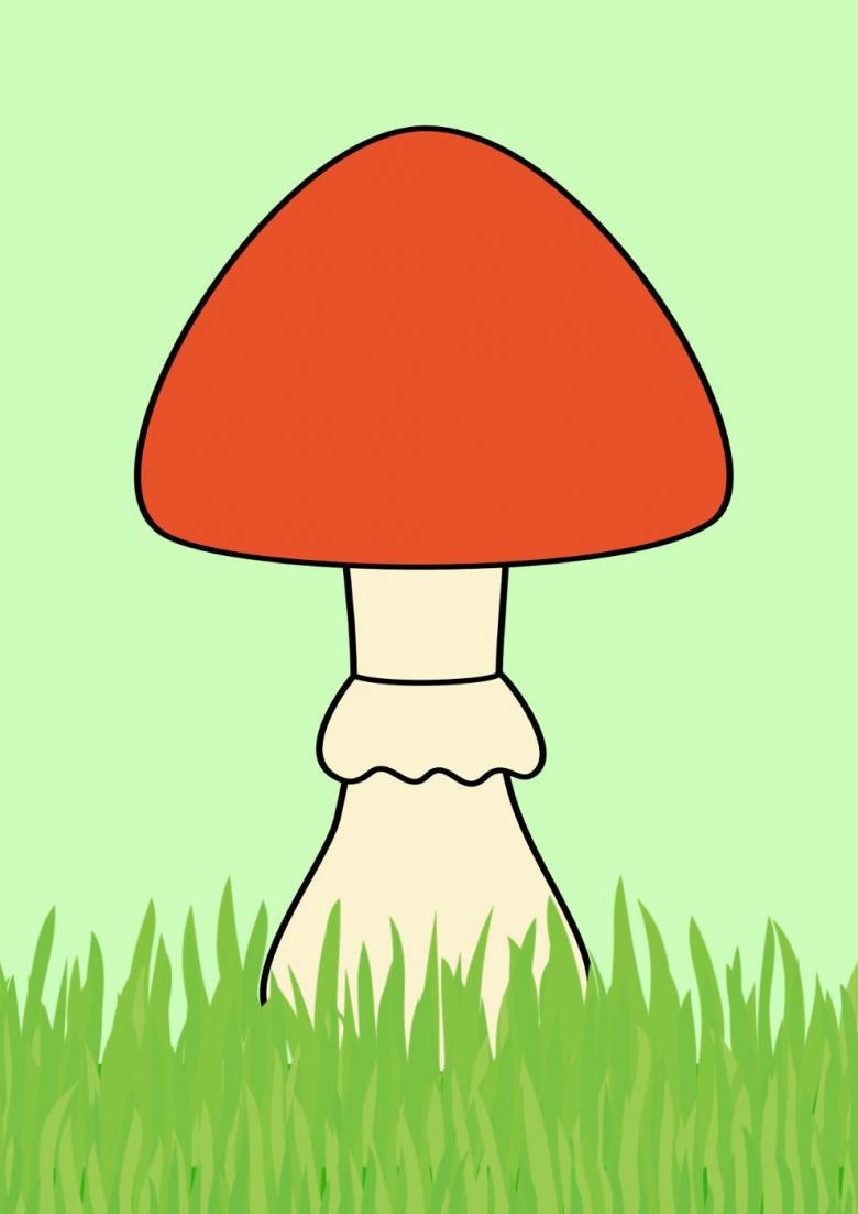 - Une fois le champignon dessiné et peint, vous pouvez penser au reste de l'arrière-plan et finir de dessiner l'herbe, la forêt, la mousse. Peignez l'arrière-plan. Le travail est prêt.