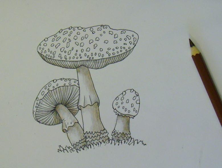 Il est relativement facile de coucher sur papier ce champignon coloré. C'est à la portée même d'un artiste novice.