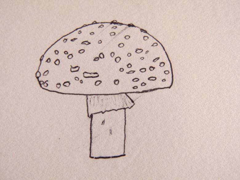 - Le champignon terminé est dessiné avec une règle noire et, si vous le souhaitez, coloré avec des crayons de couleur.