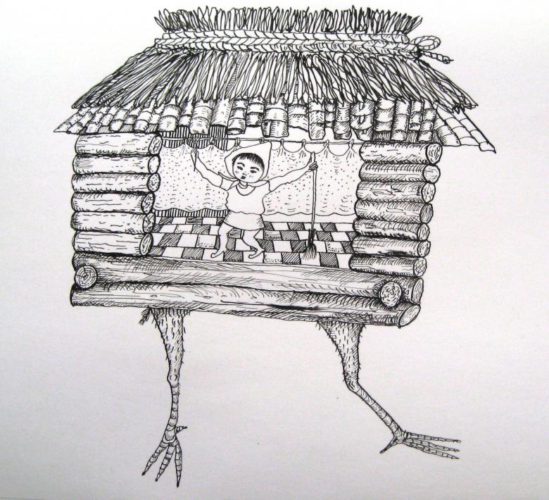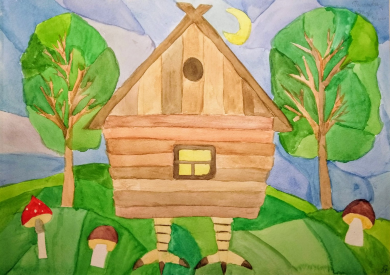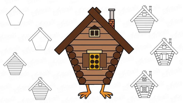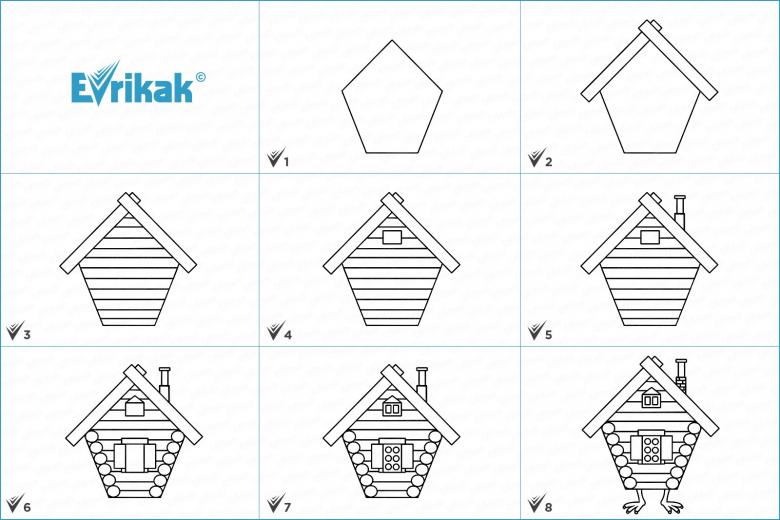 Cette option sera très attrayante pour les enfants. Après avoir lu des contes de fées, après avoir représenté une cabane ordinaire, ils peuvent demander comment dessiner la cabane de Baba Yaga, cette maison vivante.