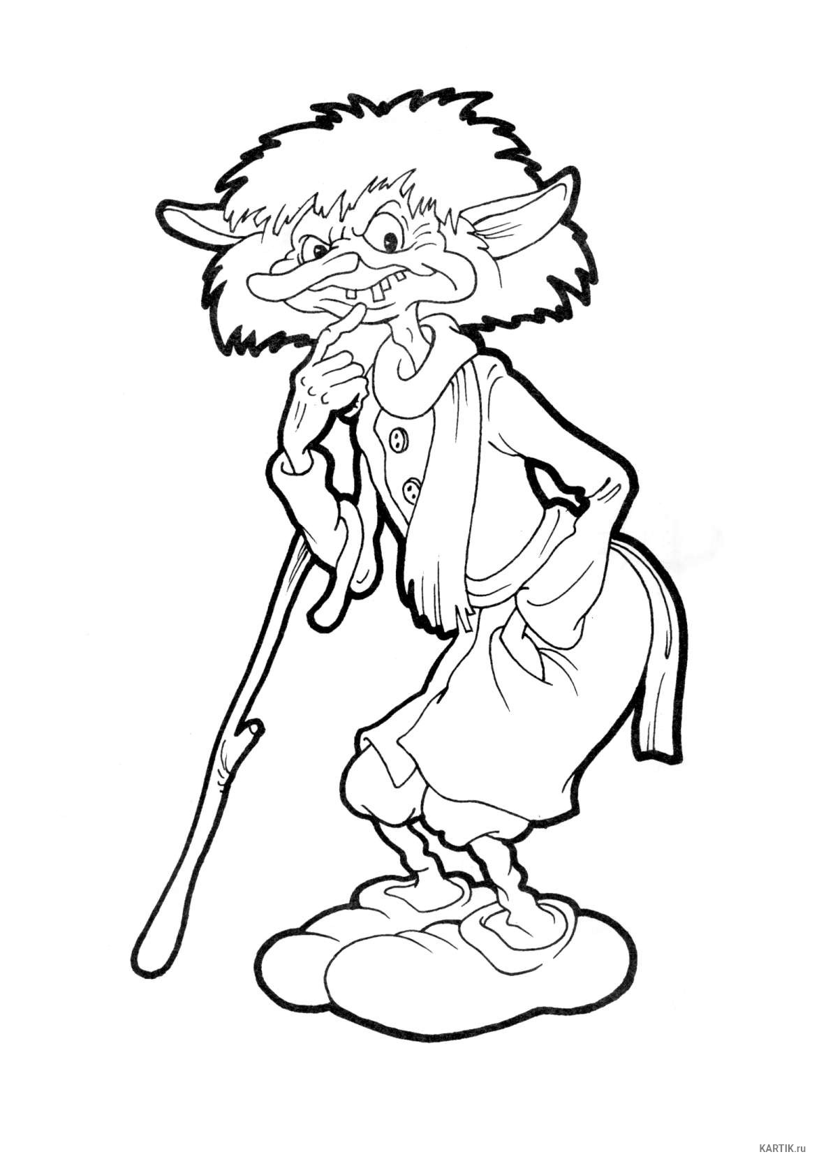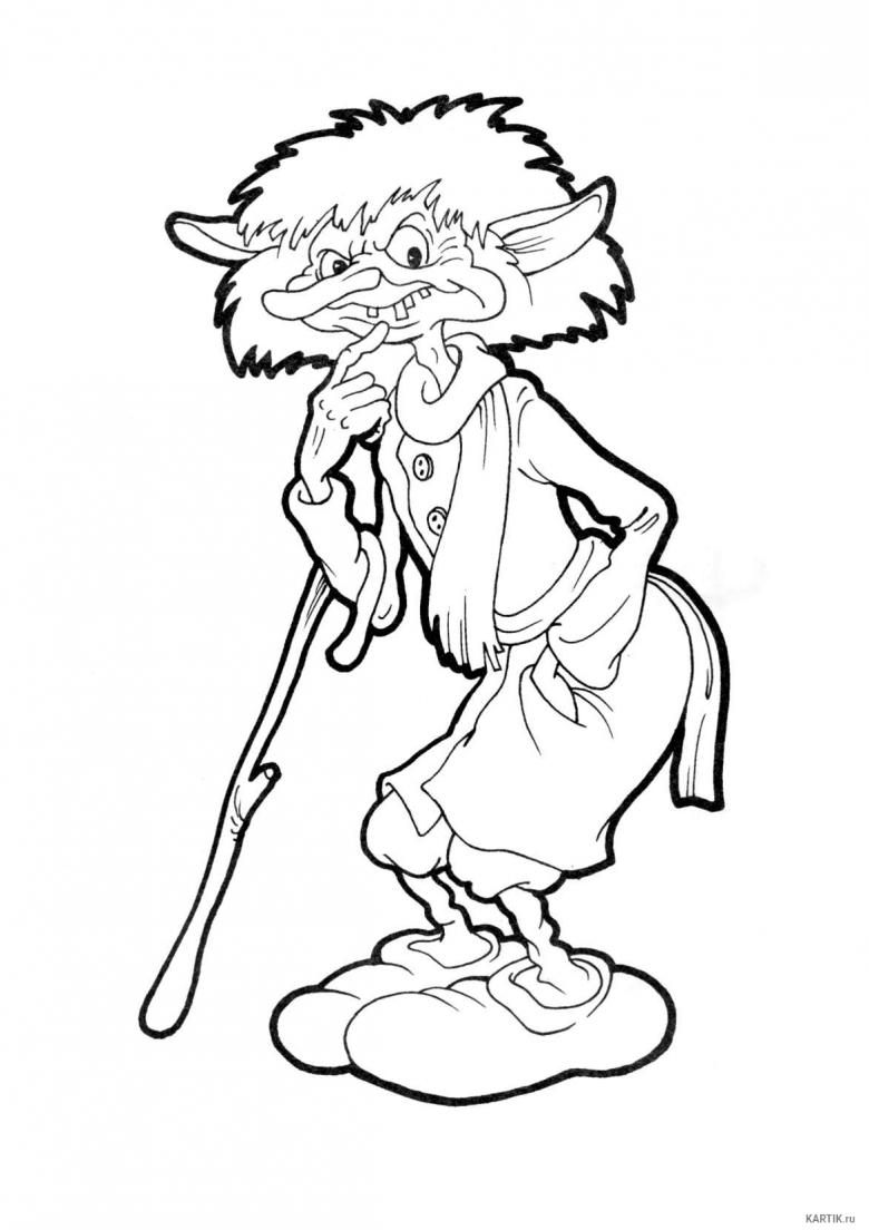 Pour commencer, dessinez au crayon la silhouette d'une vieille femme sur une feuille de papier. En gros, au milieu de la feuille, dessine un visage ovale. Il est immédiatement dessiné torse fin. Les jambes avec de grands pieds sont dessinées en dessous.