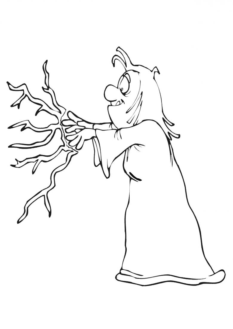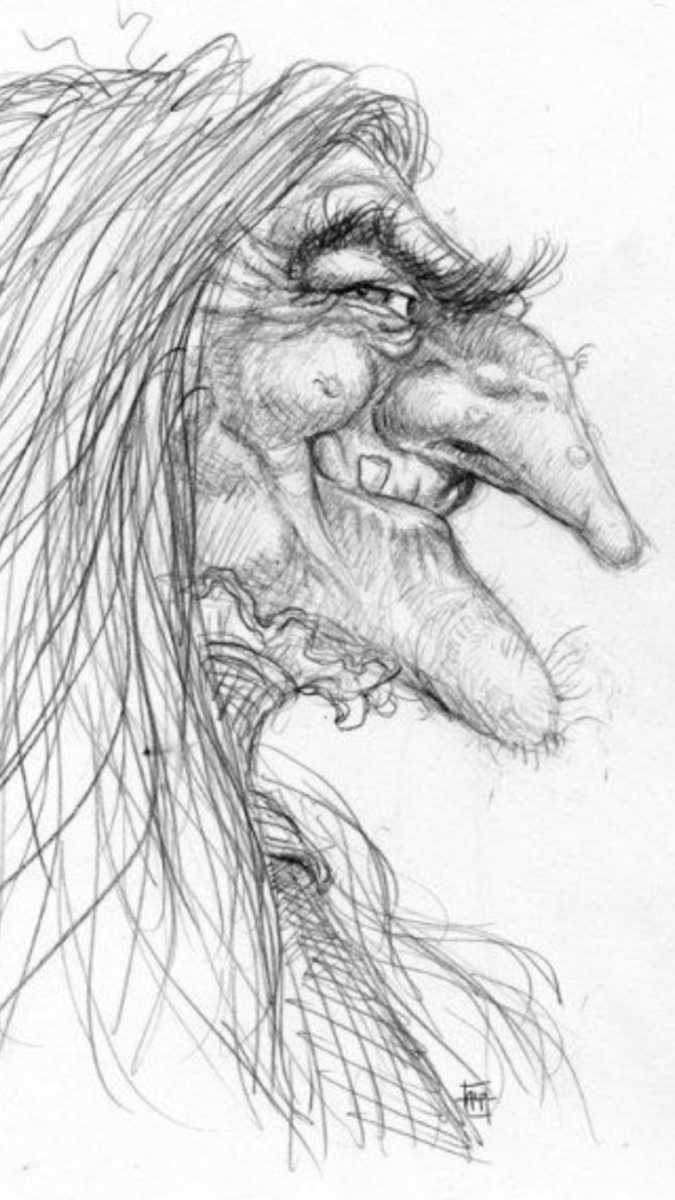 Passez au visage : nez fin et crochu, lèvres courbes, yeux étroits avec des sourcils larges. Ensuite, créez une coiffure : l'effet de cheveux désordonnés et emmêlés qui pendent sur les épaules. L'ensemble du look doit suggérer le manque d'entretien, la décrépitude et le malheur. Les vêtements seront donc aussi minables, vieux, en lambeaux.