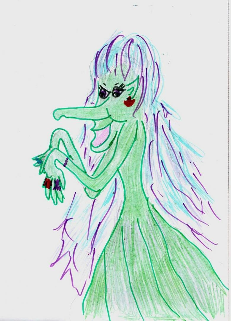 Kikimora est un personnage fictif de conte de fées et l'esprit de la mythologie slave. Les Kikimora peuvent être de deux types : les familiers (épouses de Fantômes) et les marécages (épouses forestières de Leshey). Ces deux esprits, selon la croyance populaire, n'ont rien fait de bon pour l'humanité, mais ont fait beaucoup de mal. Il serait d'autant plus intéressant de dessiner cette image : terrifiante et intrigante à la fois.