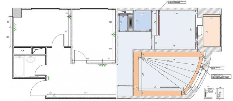 Sur la base des étapes précédentes, vous pouvez comprendre comment dessiner la salle de bains, elle sera plus petite et le mobilier sera particulier - baignoire elle-même ou douche (dessinée comme une forme géométrique, puis coins arrondis et détails tracés), lavabo, machine à laver et ainsi de suite.