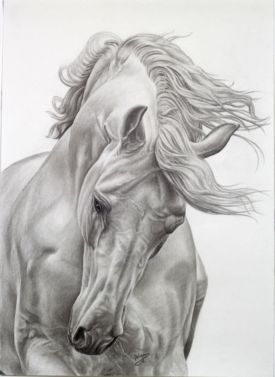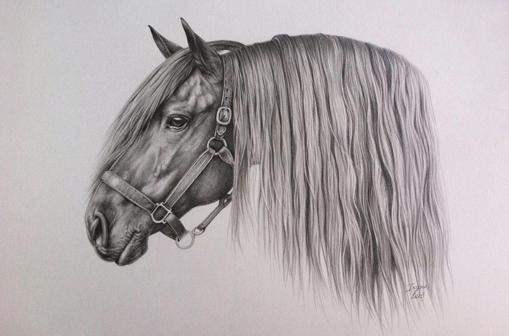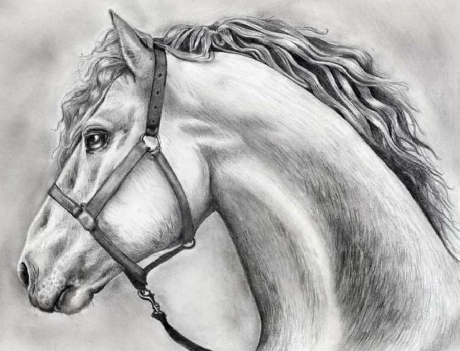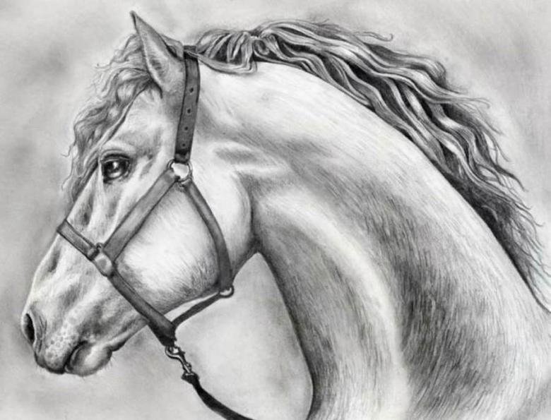 - La crinière peut être rendue plus volumineuse et luxuriante par des touches douces. L'ombre sous les cheveux doit être plus claire que les cheveux. Les cheveux doivent être ondulés et pour leur donner une direction, il est souhaitable de passer un crayon doux à la fin du travail principal.