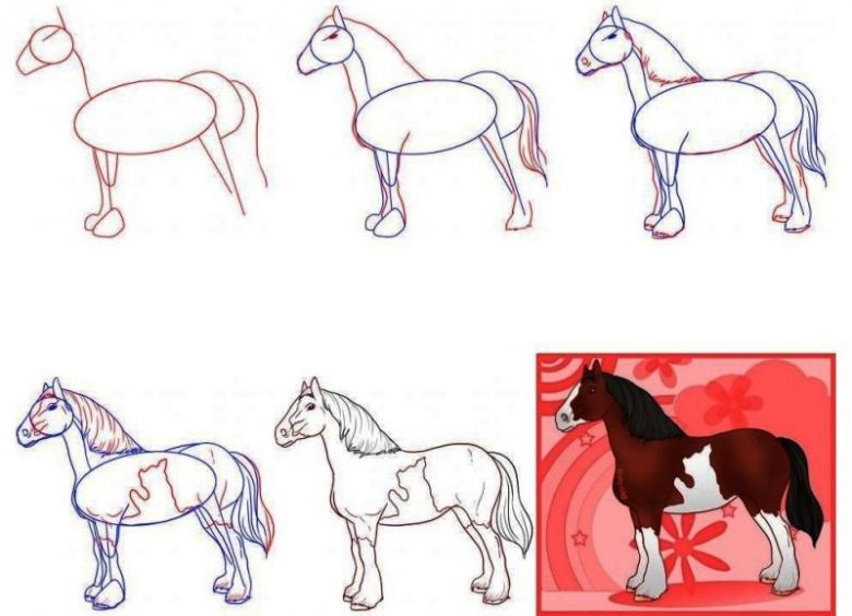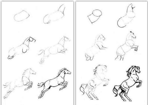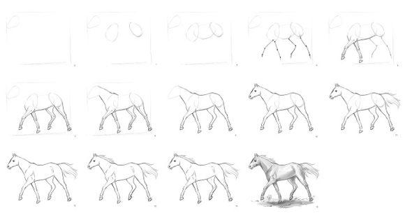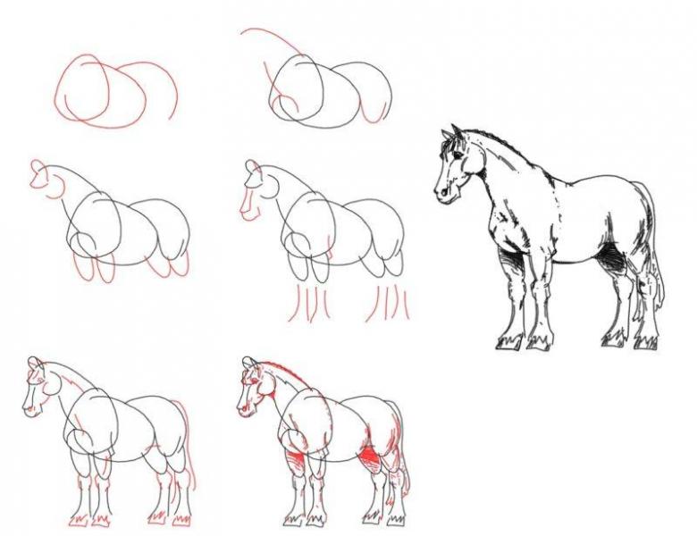 Pour le représenter correctement, vous devez respecter certaines proportions de la tête et du torse et avoir une connaissance de base de l'anatomie de l'animal. Cet article vous aidera à comprendre les subtilités et les nuances du dessin d'un cheval, étape par étape, d'une manière simple et belle, après la lecture de laquelle même un artiste novice pourra se débrouiller.