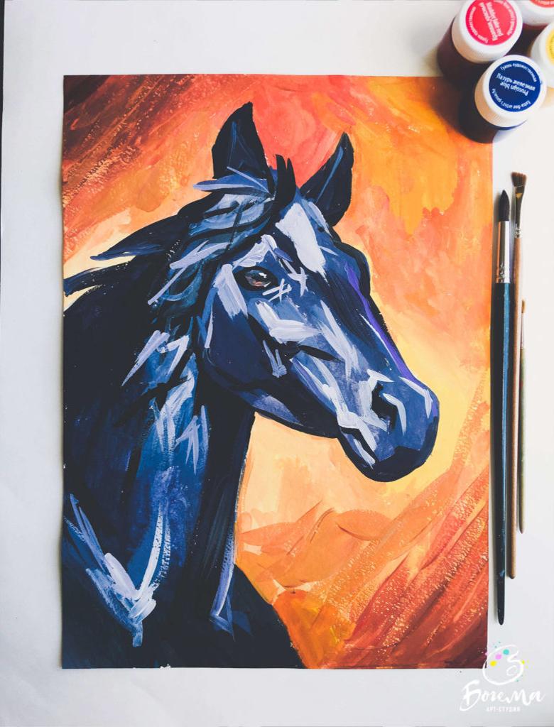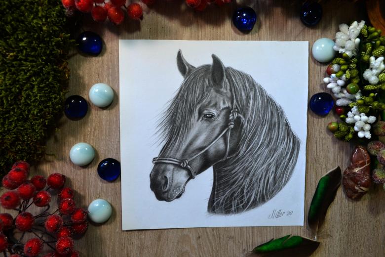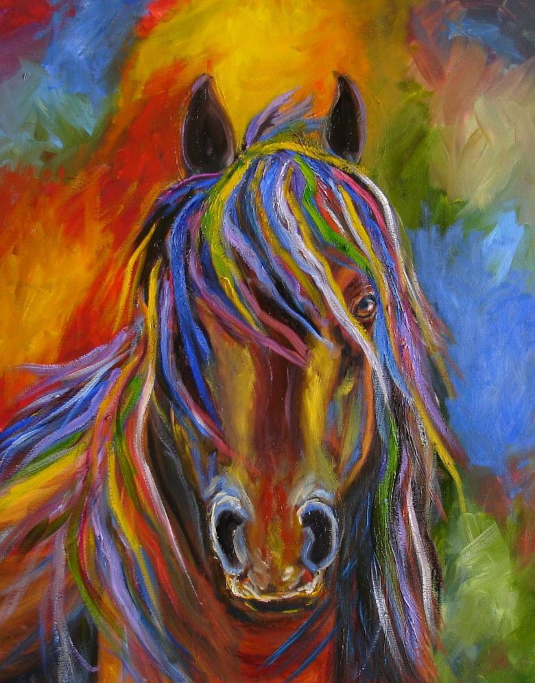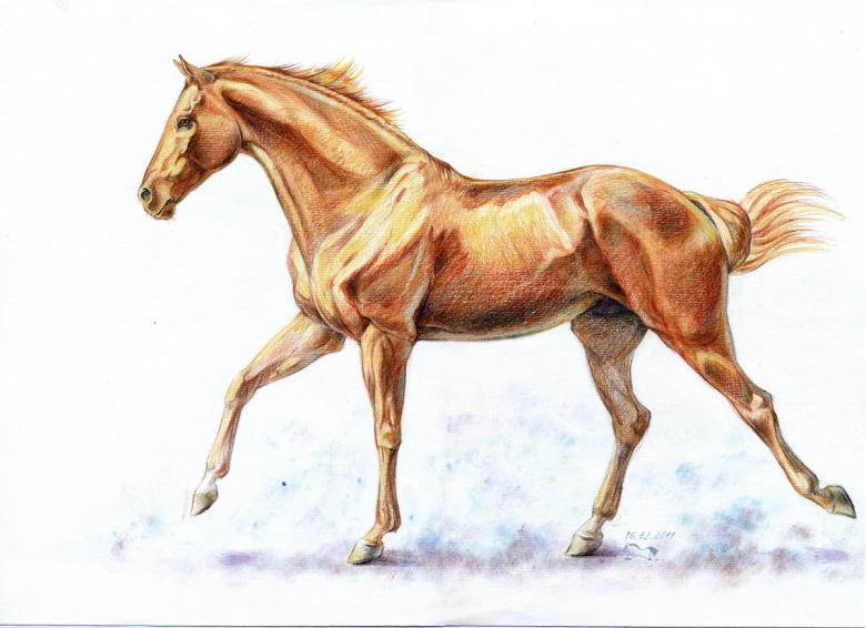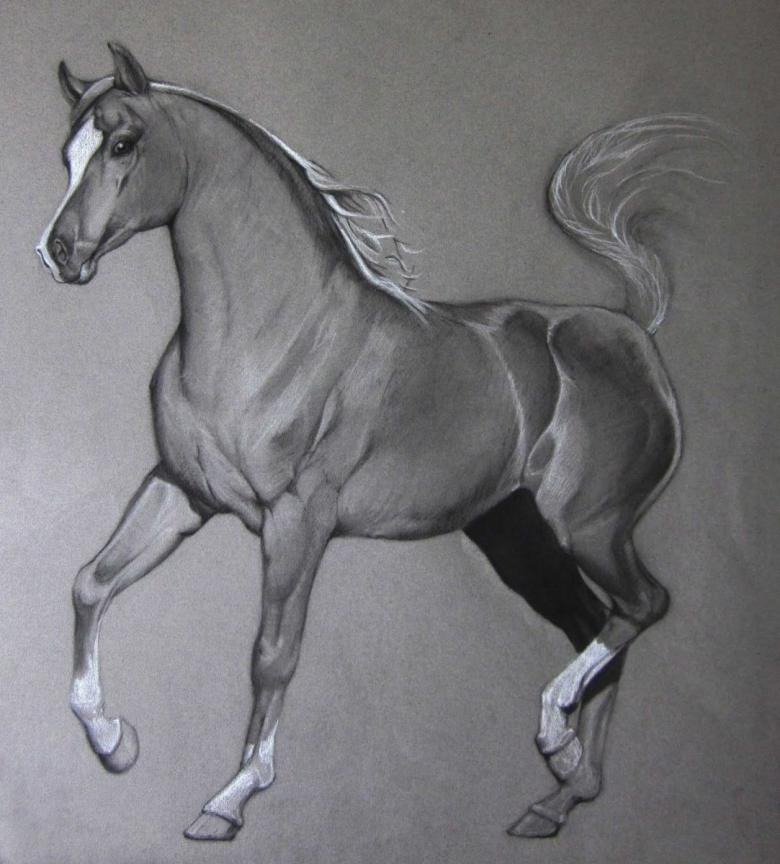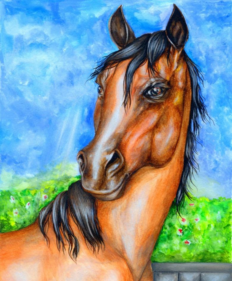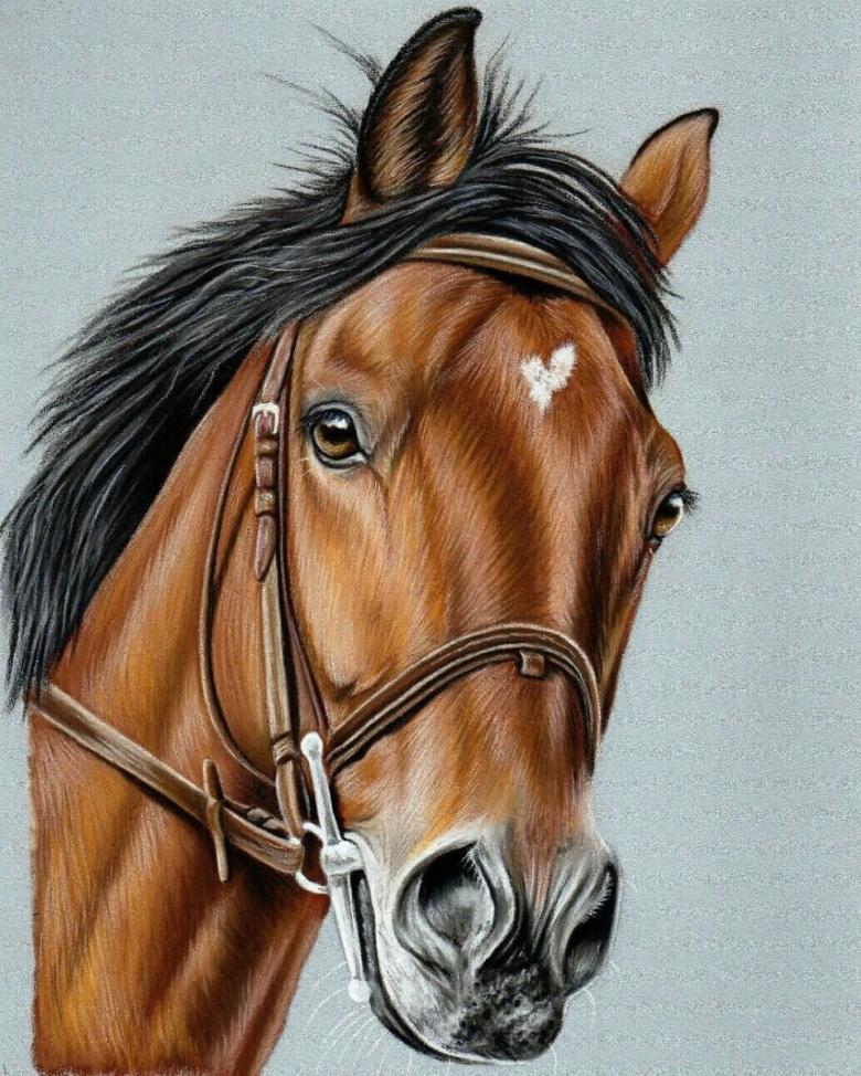 Vous pouvez dépeindre l'émotion du cheval, par exemple, la peur. Ce n'est pas un travail facile qui demande de la pratique. Il est plus facile d'utiliser la méthode de l'esquisse, en faisant attention aux détails : bouche ouverte, narines évasées, yeux grands ouverts traduisent parfaitement l'humeur de l'animal.