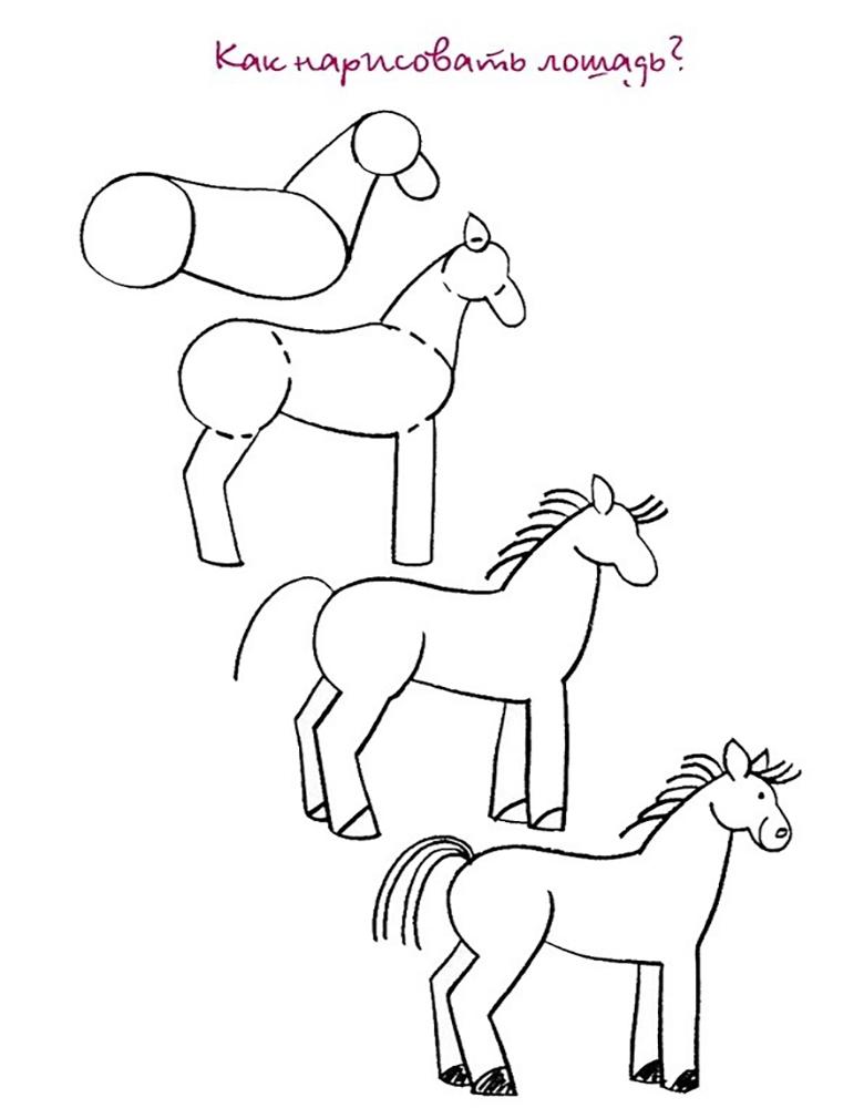 Les enfants adorent les animaux et les chevaux ne font pas exception. Mais n'oubliez pas que ce sera un défi pour un enfant de recréer un animal en tenant compte de l'anatomie. Il est plus facile de commencer par une image simple et facile à comprendre pour l'enfant.