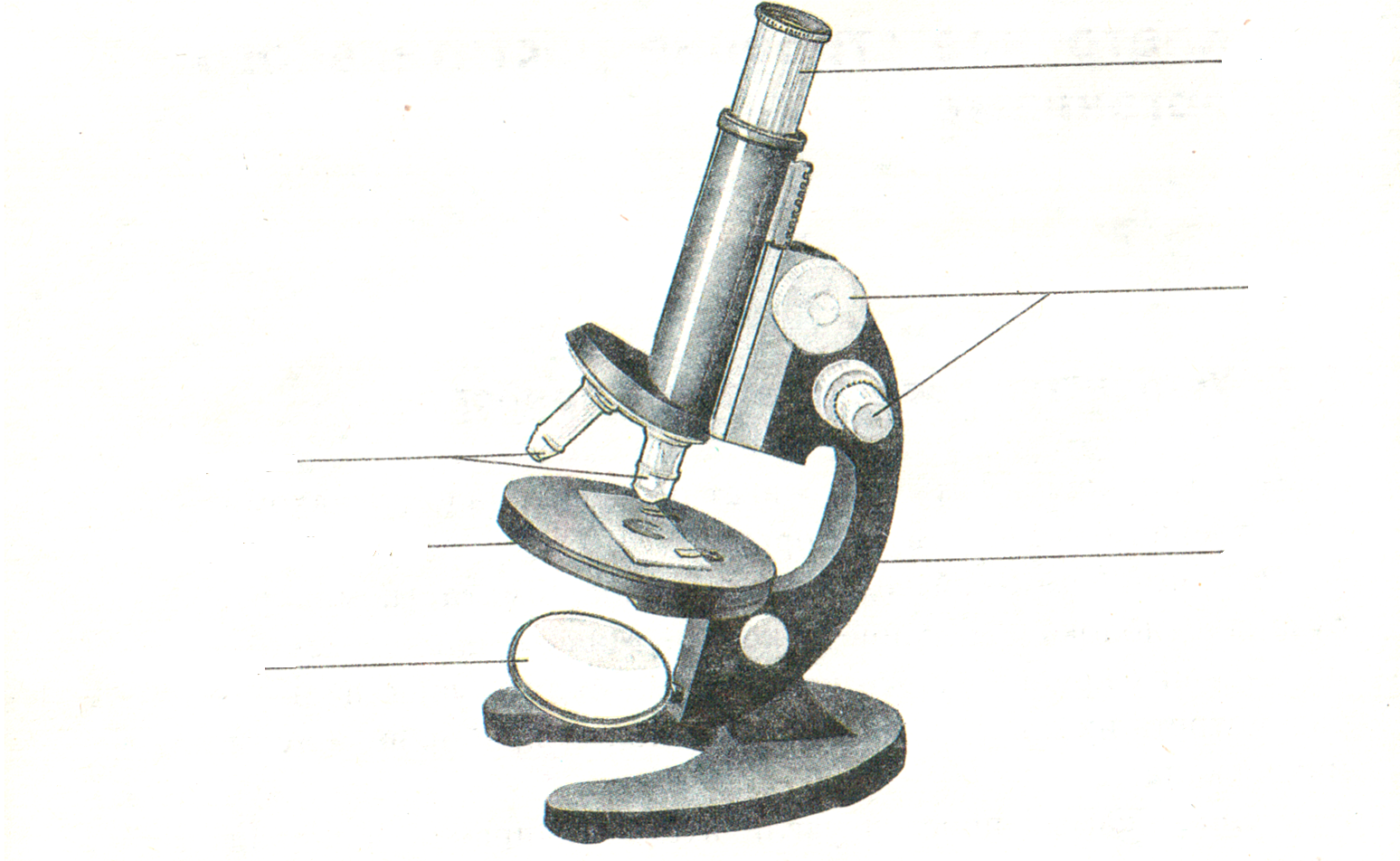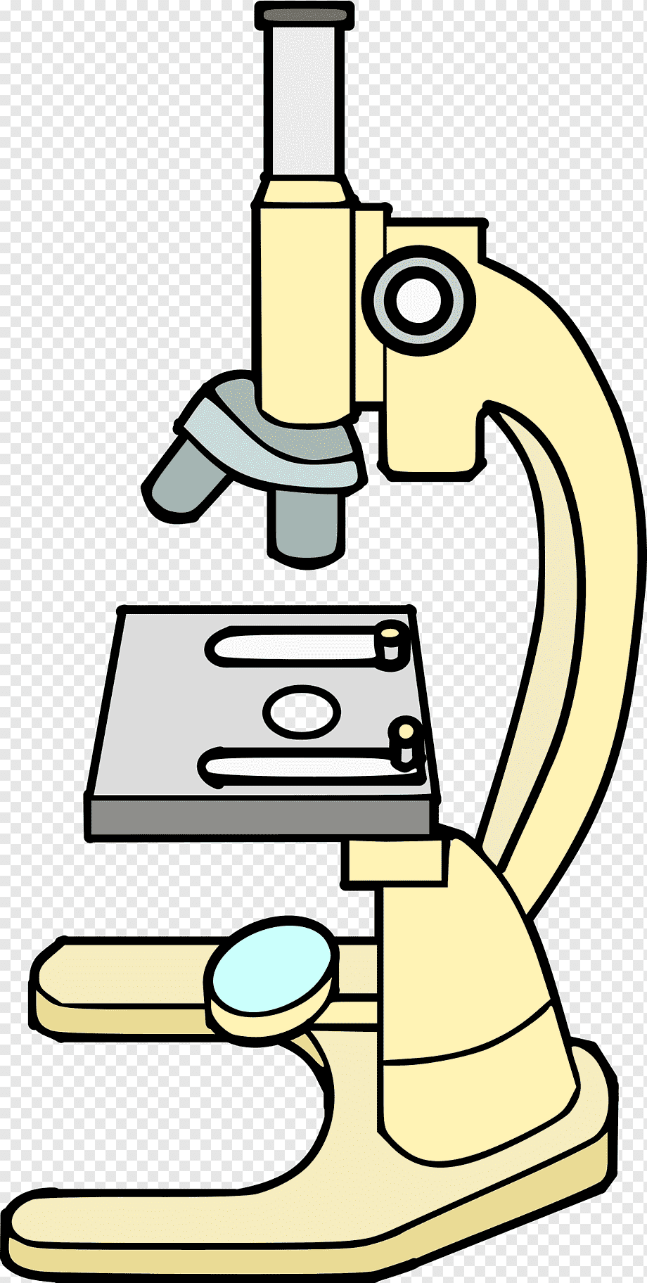 - Au dos, un pied est fixé à la base, au support. Il fixe le microscope pour qu'il ne tombe pas et se tienne droit, en gardant son équilibre. La base est ensuite dessinée. La base ainsi que la scène à laquelle les pieds sont attachés pour fixer le matériel.