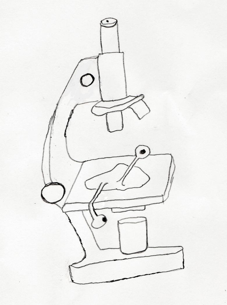 Il est plus facile pour les enfants de dessiner un microscope de profil. Lignes claires habituelles, pas de détails supplémentaires, pas de volume. Toutes les lignes sont simplifiées autant que possible. Droite, horizontale, verticale, diagonale, etc. .