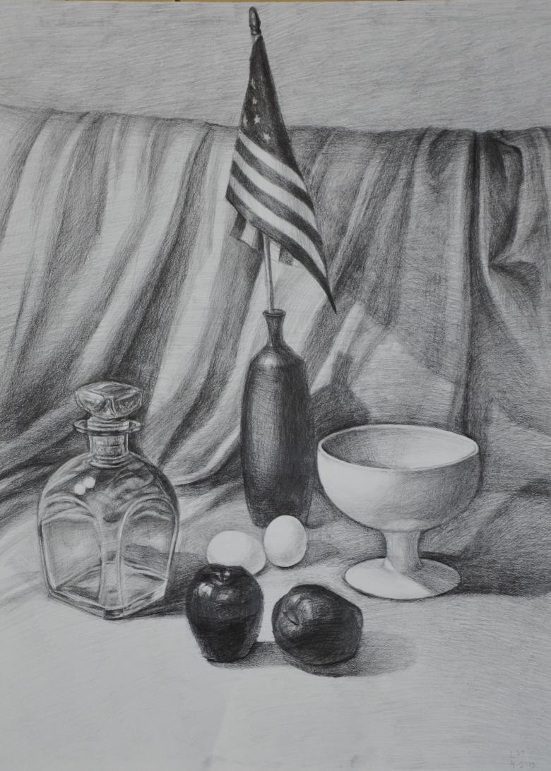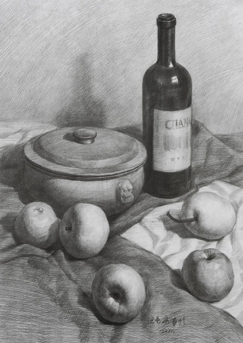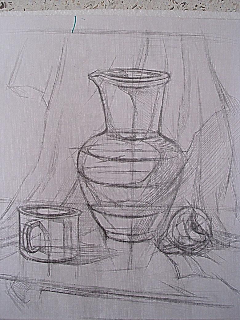 Pour réussir un dessin de nature morte au crayon, il faut suivre les étapes du travail de manière cohérente :