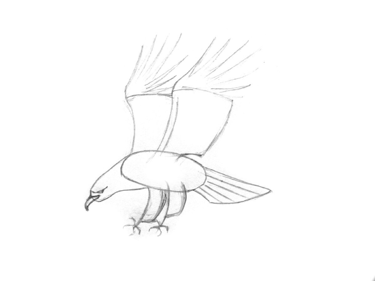 Il existe une autre technique pour dessiner un aigle fier. Instructions pour les débutants sur la façon de dessiner un aigle :