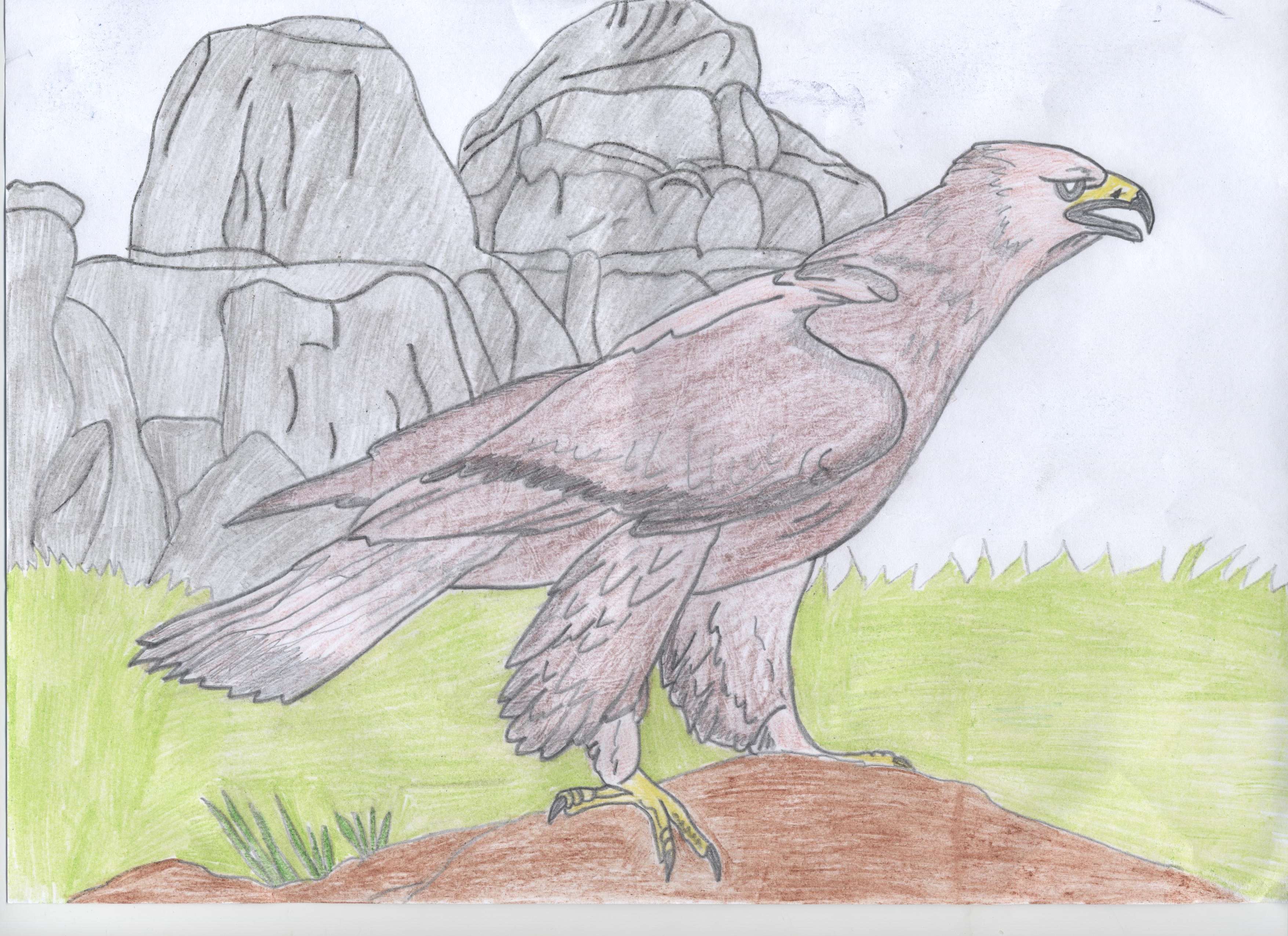 La silhouette fière et majestueuse d'un aigle est reconnaissable par tous, adultes et enfants. Cet oiseau aux ailes très déployées plonge rapidement en vol, s'assoit sur les rochers dans les steppes et fait des plans dans l'air pendant un vol calme. Parfois, il n'est même pas nécessaire d'avoir un spécimen pour faire un croquis, car l'oiseau est très reconnaissable.