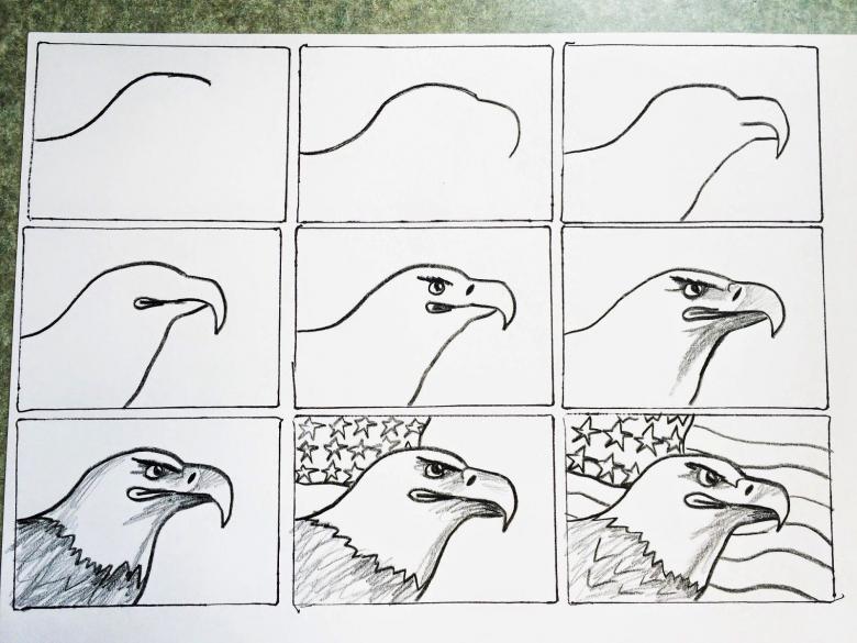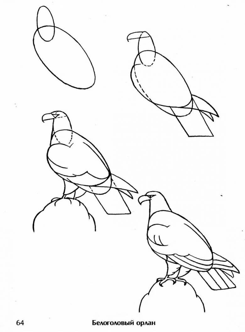 Comment dessiner un aigle au crayon - instructions faciles à suivre pas à pas pour le travail et de nombreuses photos pour le croquis