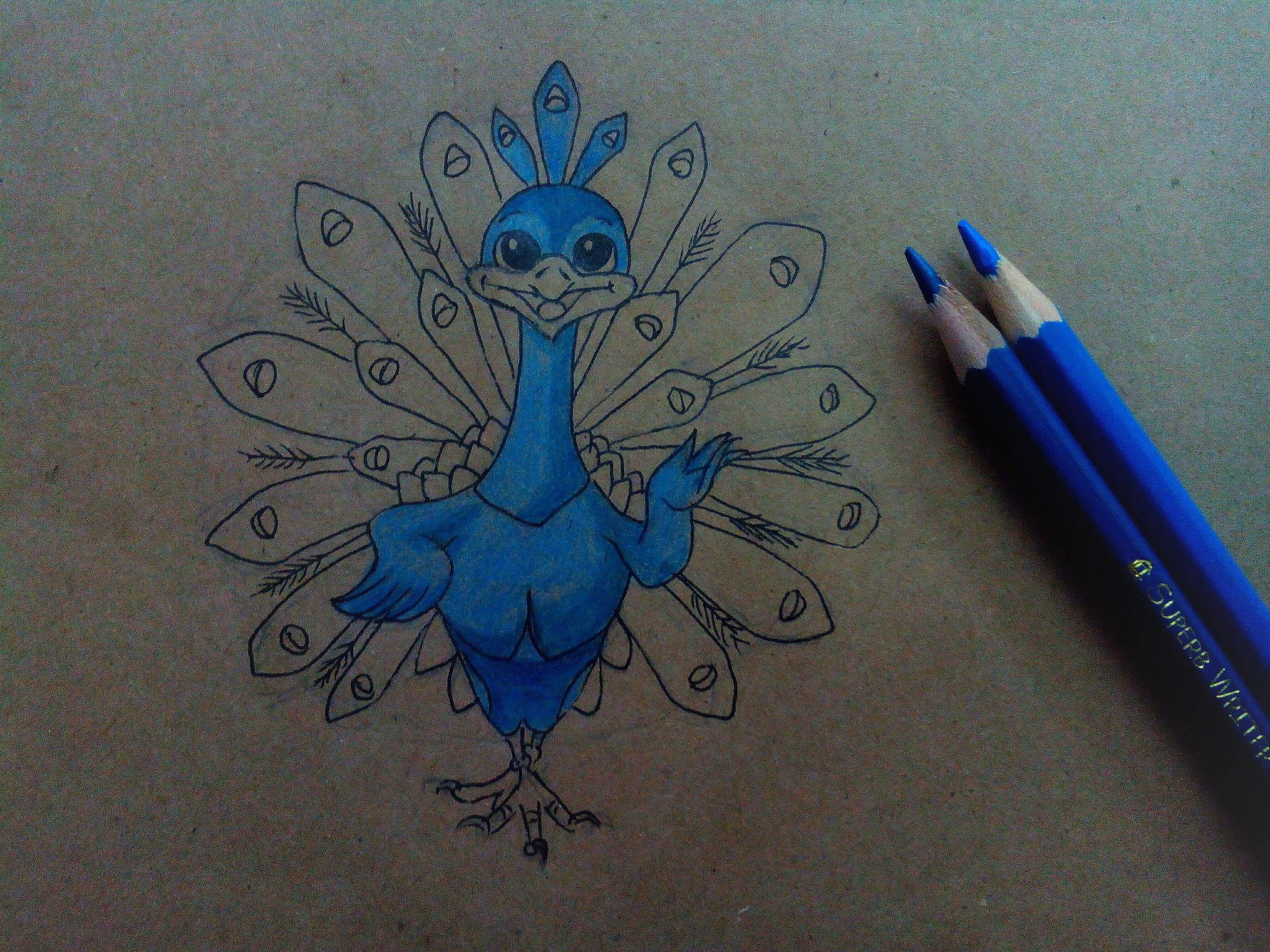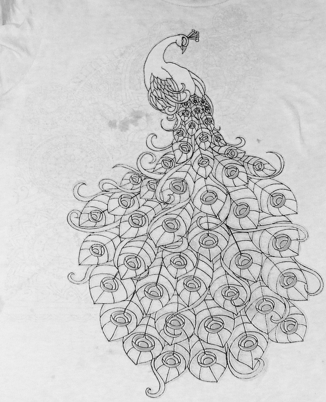 - Le contour inférieur de la figure est légèrement doublé pour donner du volume au corps du paon.