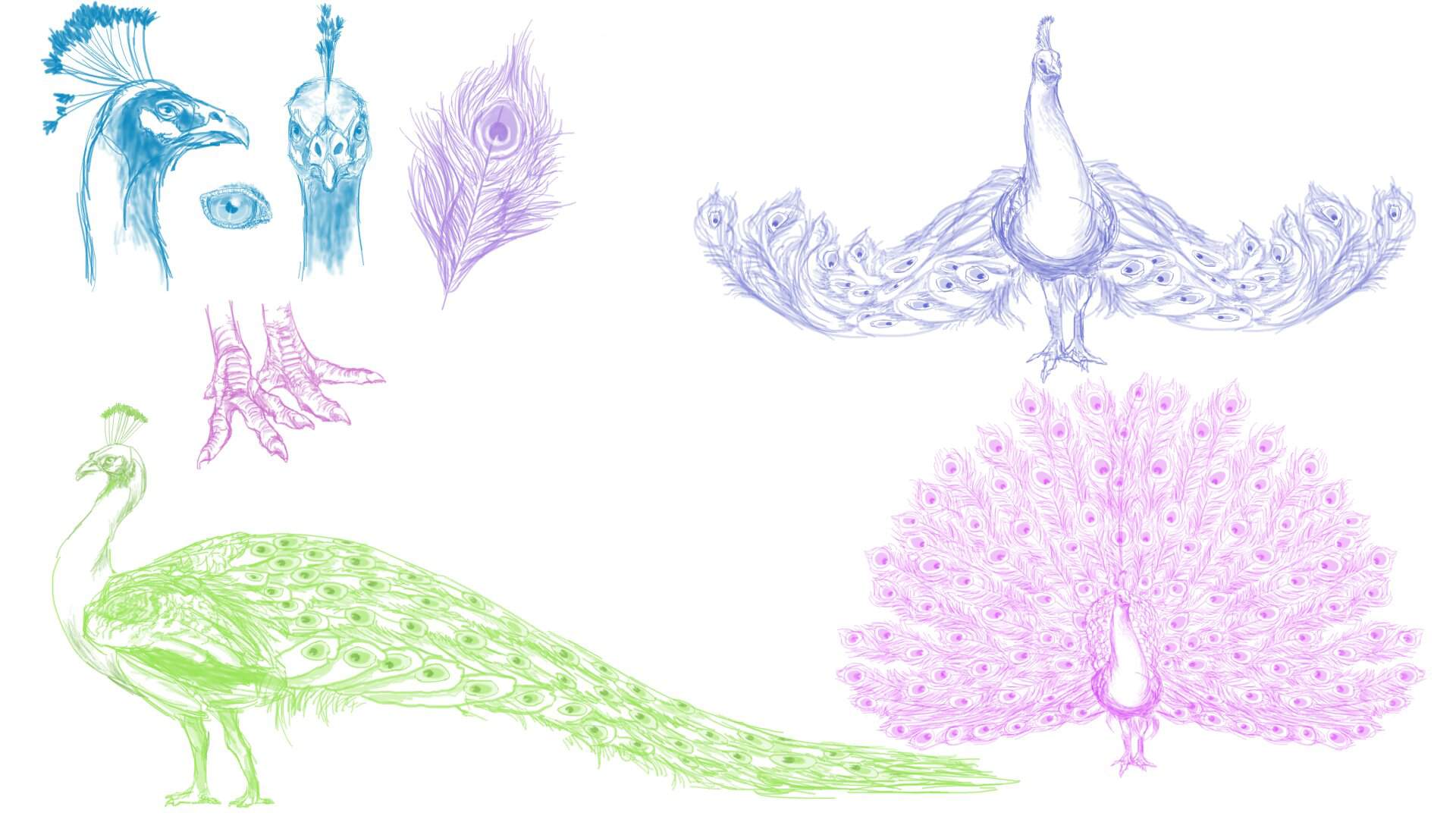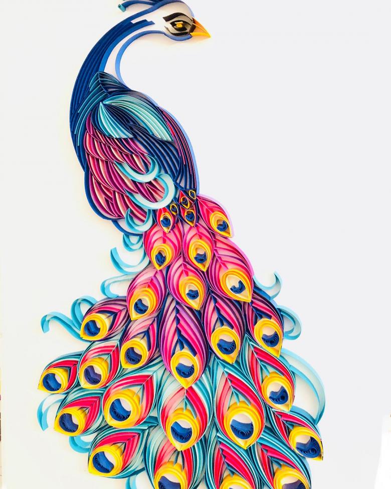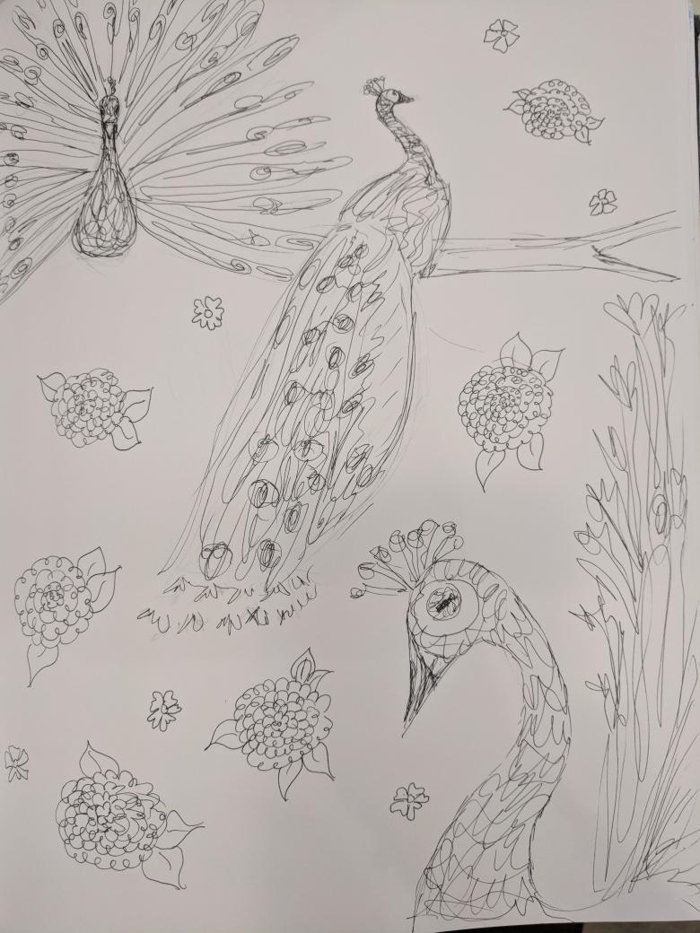 Bien sûr, n'oubliez pas le papier blanc et la photo d'un vrai paon pour guider l'artiste dans son processus de création.
